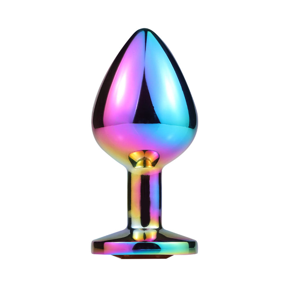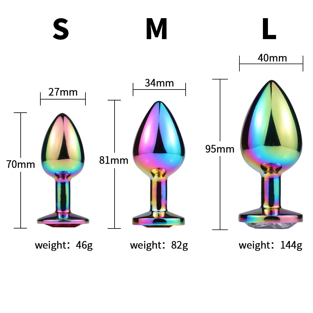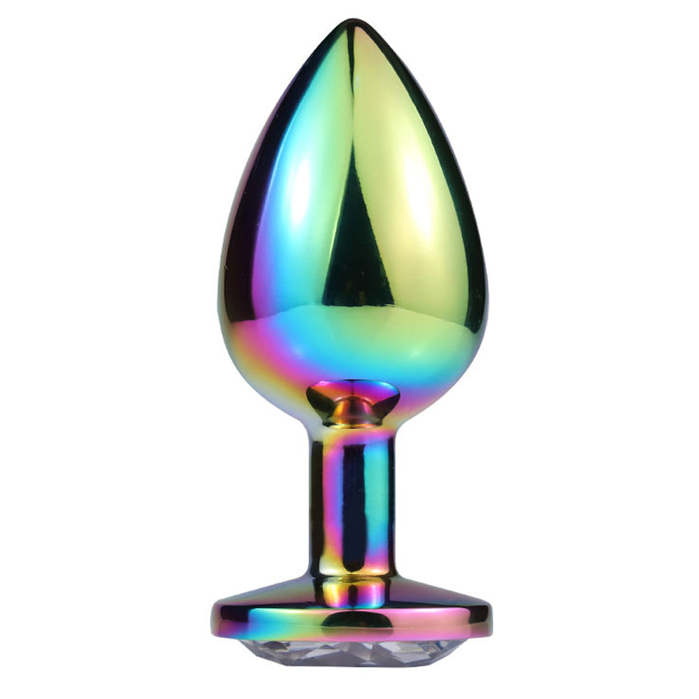 This seamless aluminium alloy anal toy has an iridescent rainbow finish and a multicoloured gem at its base so you can show your true colours from any angle! The seamless metal finish is compatible with all anal lubricants for a smooth glide in or out, and the tapered tip makes insertion a breeze. It comes in 3 sizes to suit your preferences or experience level and is also a great temperature play toy if you're in the mood to turn up the heat or chill out! Once your fun is done, just rinse the non-porous metal under warm running water with some toy cleaner and it'll be ready for another round of body-safe backdoor bliss...