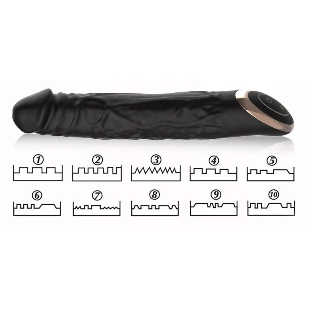 This expertly sculpted vibrating dildo sports a phallic ridged head that's perfect for G-spot stimulation and a flexible veiny shaft for intense sensations as you move it in and out of your body. It comes packed with 10 powerful vibration modes that you can toggle with the touch of a button so you can customise your climax for up to an hour at a time!