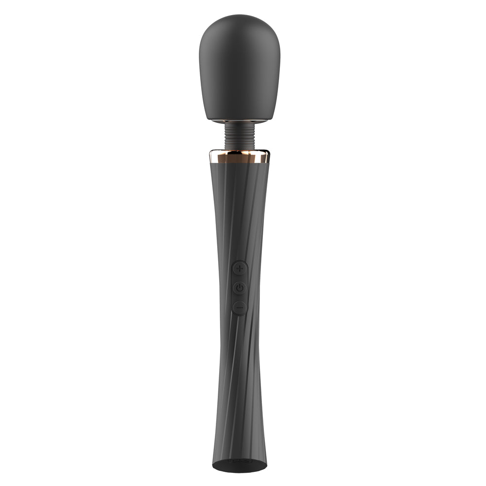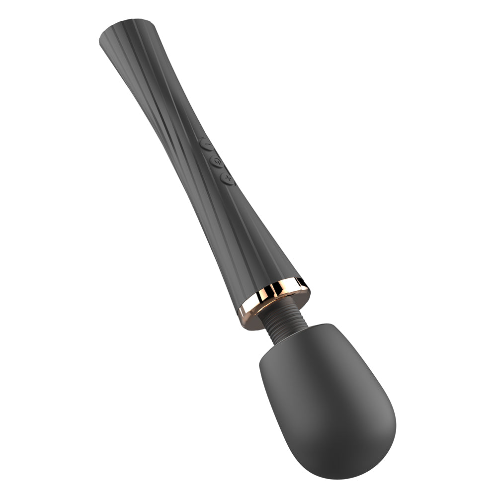 This sleek vibrating wand massager features a smooth silicone construction that feels lovely in your hand, with a grooved texture all over the handle for a secure grip. The convenient wireless design makes it easy to move around your body or a partner's while you use the intuitive 3-button control panel to adjust your vibration settings. Choose from 5 powerful vibration patterns with the middle button (which also turns the wand on and off), then adjust the strength of your selected pattern with the +/- buttons for 3 intensity levels to tailor the vibes to your liking!