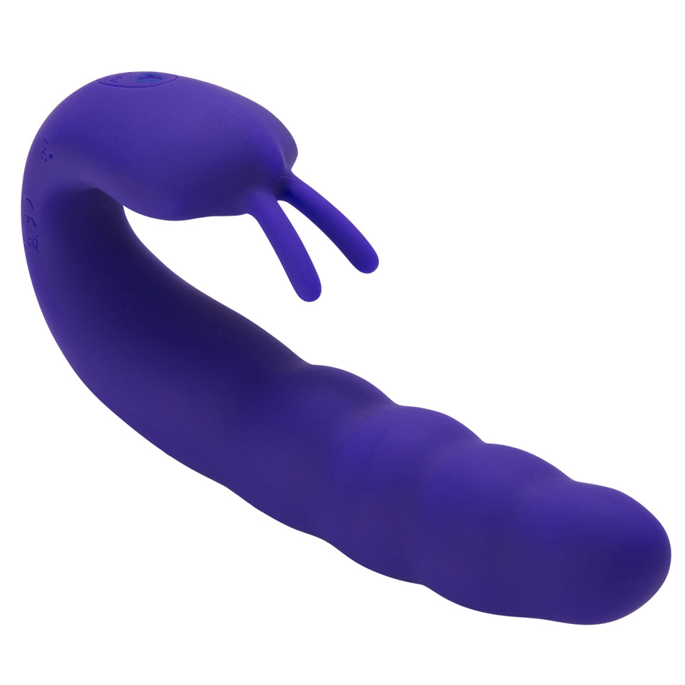This reimagined rabbit vibrator features a ribbed bulbous shaft and a dual-pronged clitoral teaser to offer simultaneous internal and external stimulation. The flexible design comfortably cups your body and uses dual motors to deliver 10 modes of vibrations, plus a rolling function in the precision ball for targeted G-spot pleasure!