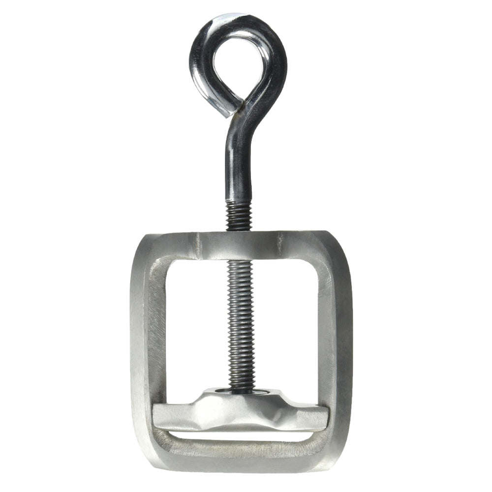 This screw clamp is a simple yet effective cock and ball torture tool that will leave your boy toy trembling with need and anticipation while you trap them in this tantalisingly cruel device. Simply unscrew the hook to release the bar mechanism, place your captive's testicles between the bar at the base of the clamp, then screw it tightly back into place to apply deep pressure against the balls. The hook-like fixture also doubles as a looped handle that you can attach extra torturous goodies to (sold separately) — try adding hanging weights for a more intense ball-stretching effect on top of the ball crusher's heavy metal design, or a leash so you can pull your sub around and force them to keep up with you!