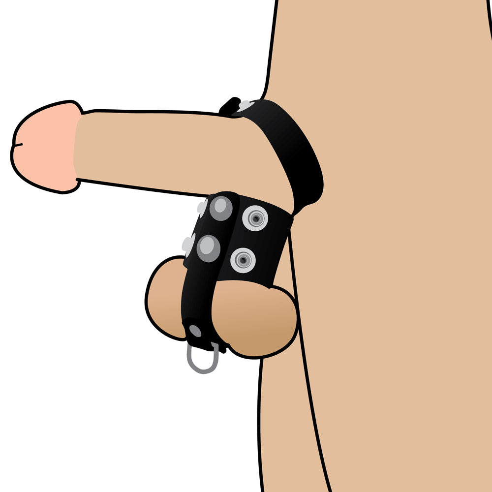 If you enjoy a tugging sensation on your testicles while you play, this ball stretcher will take care of that for you so you can free your hands up for other activities. The cockring has button snaps for easy wearing and removal and keeps you rock-hard for longer so you can enjoy yourself all night long! The ball stretcher highlights and separates your testicles while a sturdy D-ring at the base lets you or a lover add a leash, weights, or whatever other creative accessories you can think of...