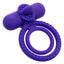 This vibrating cock ring has dual rings that fit snugly and securely around the wearer's shaft and testicles to keep them harder for longer while offering 12 intense functions of vibration they can enjoy at the touch of a single button, solo or partnered! The flickering stimulator is ergonomically tongue-shaped to deliver pinpoint precise pleasure and is surrounded by raised silicone dots that mirror the ones on the wearer's ball ring, delivering delicious extra stimulation with every movement...