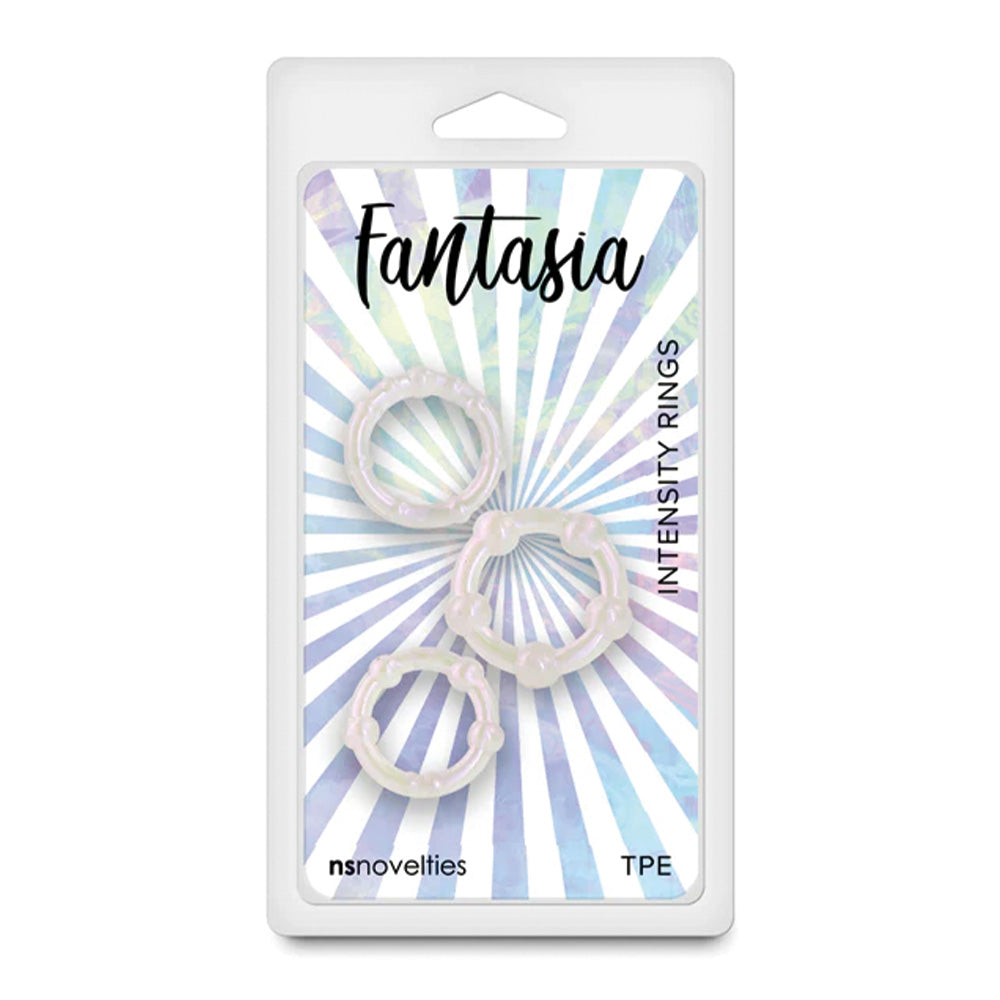 Prolong your and your partner's pleasure in style with the Fantasia Intensity Cock Rings 3-Pack!