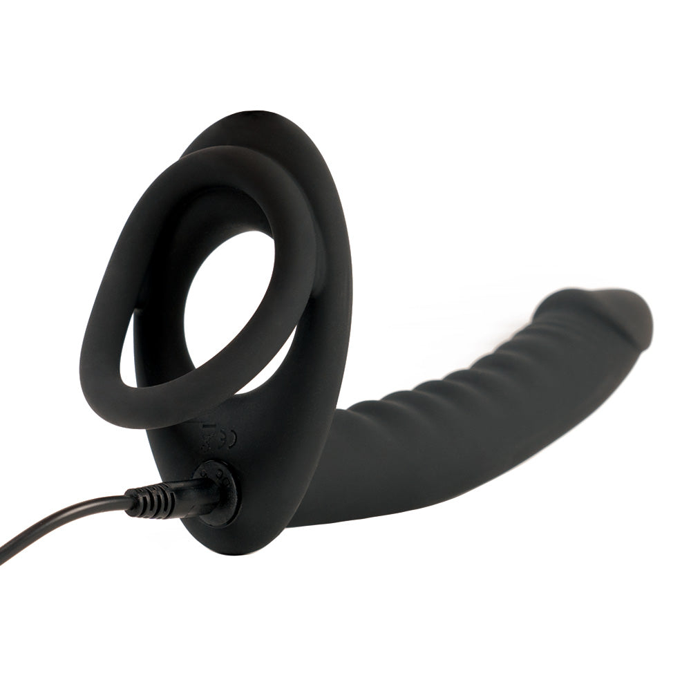 This vibrating cock ring is the perfect toy choice to satisfy adventurous couples that are just starting their DP journey and comes equipped with a slim, beginner-friendly dildo that's ribbed along its shaft, offering extra stimulation with every thrust. The ridged, phallic head 'pops' satisfyingly inside the receiver (just like the real deal) and has a petite, tapered shape to make penetration nice and easy. Once it's in position, just hold the power button underneath the shaft to activate and explore 10 tantalising vibration modes to tease and please you both!
