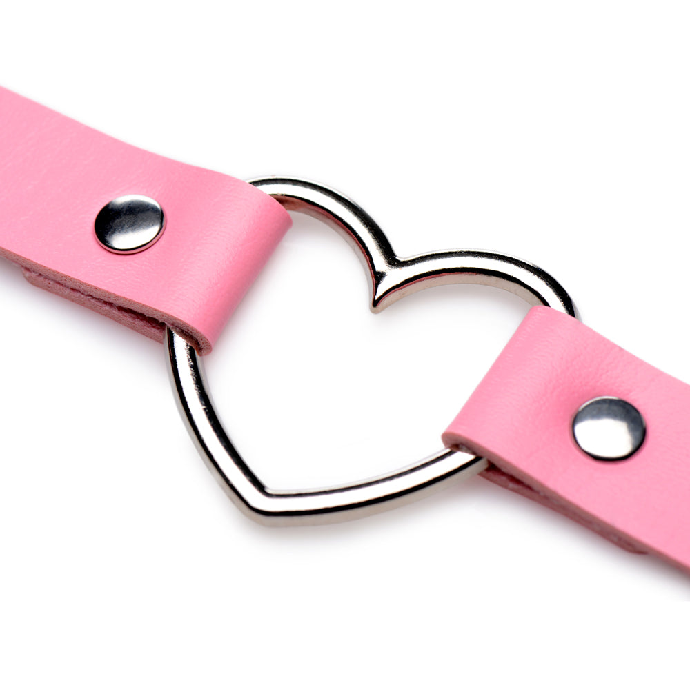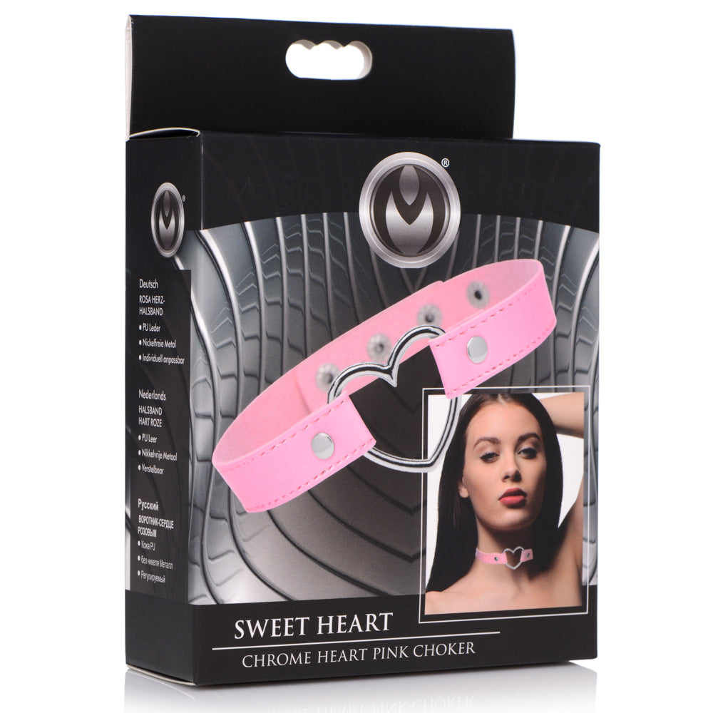 Show off your sweet and submissive side with the Master Series™ Chrome Heart Choker!