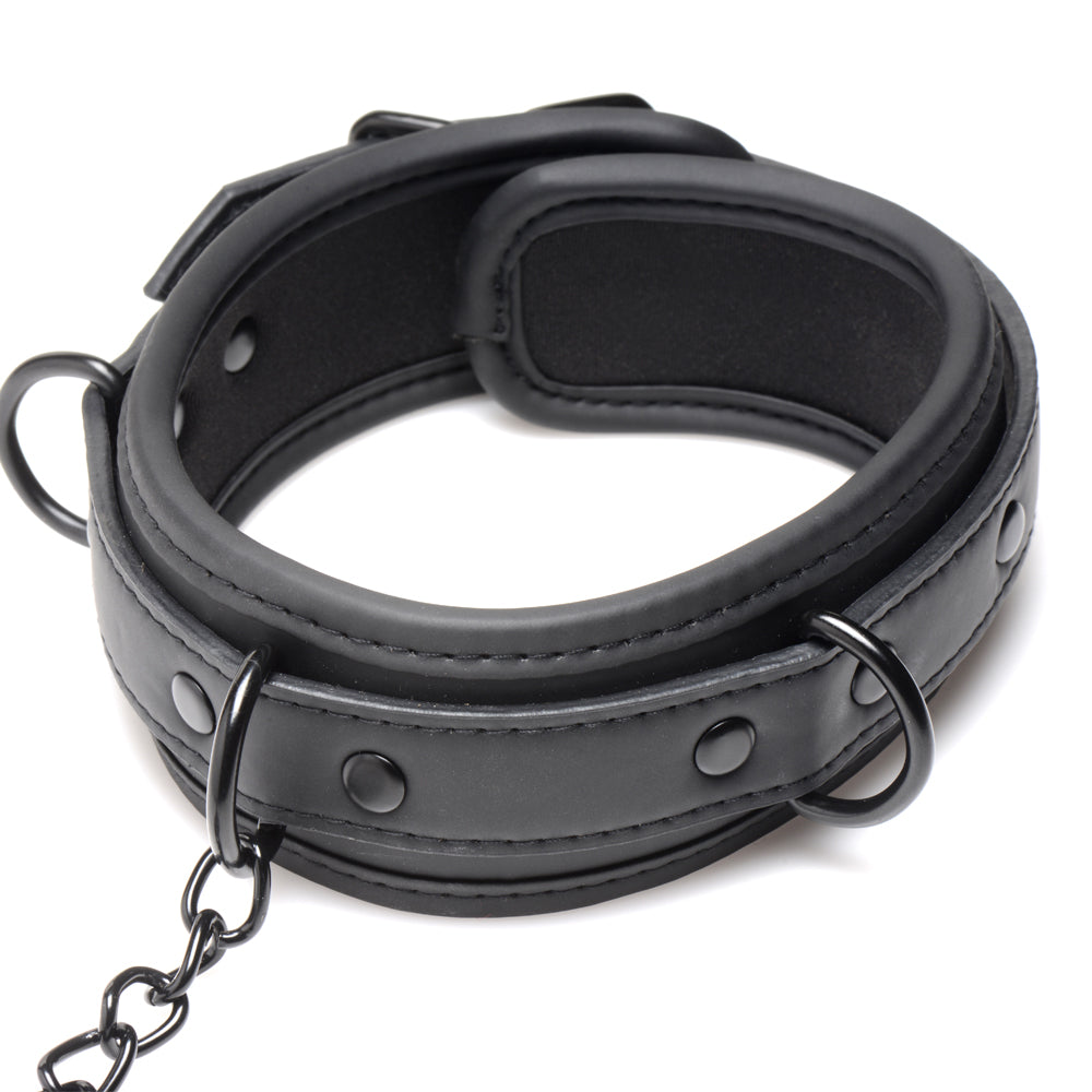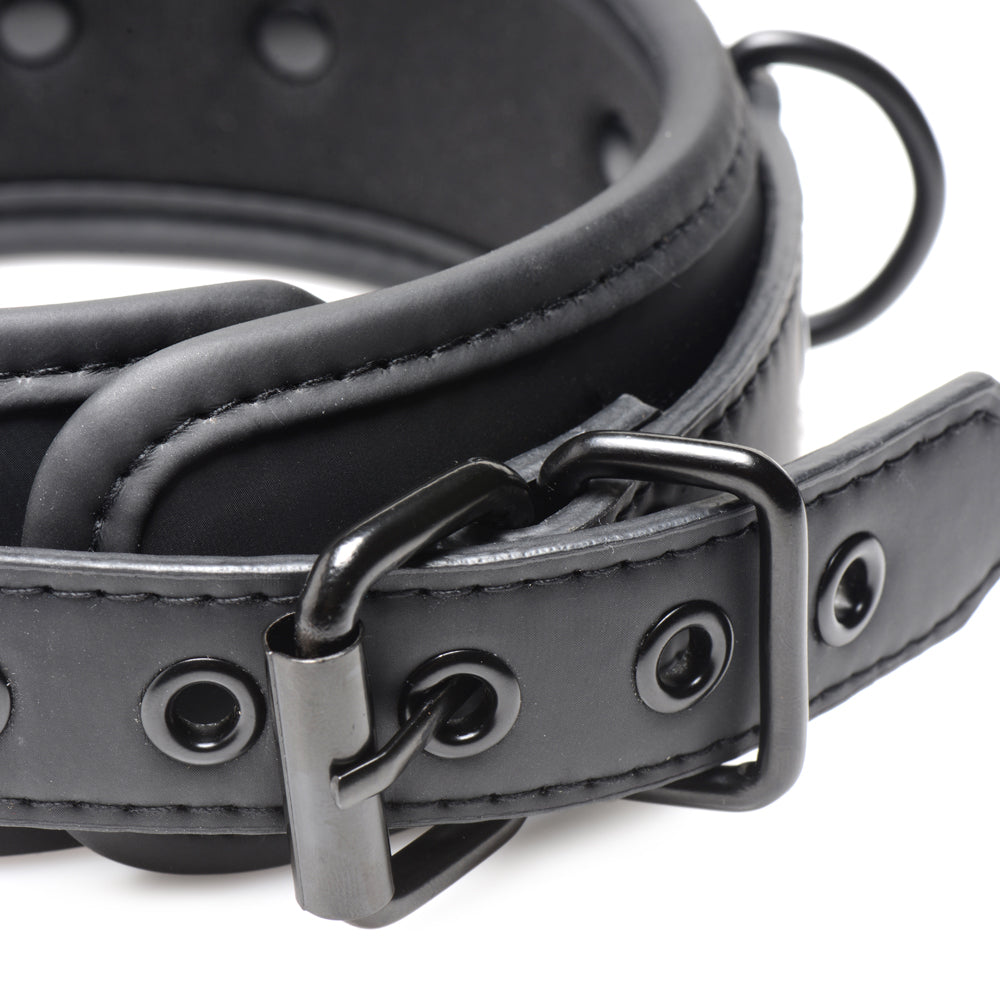 This sleek bondage accessory is made from padded neoprene with an adjustable buckle to keep its wearer comfortable while also withstanding tough use and long scenes. The soft, smooth material is gentle against the neck and is adorned with 3 D-rings so you can attach other BDSM accessories (sold separately) for extra fun...