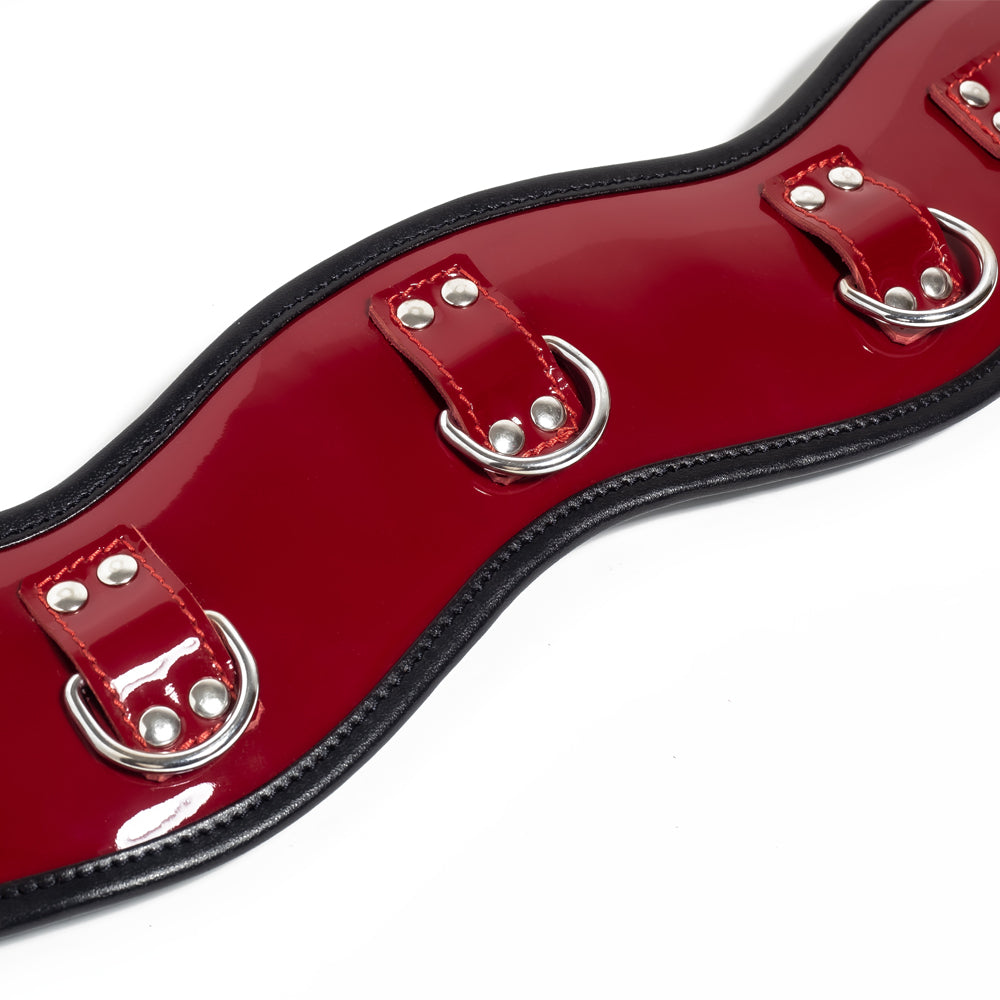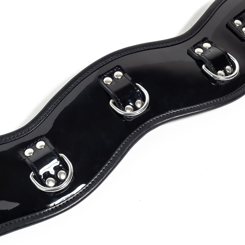 This glossy collar has a rigid, wavy shape that follows the contours of the wearer's chin, neck, and shoulders to restrict their head movement and keep the neck extended. The wide design prevents the wearer from looking down or to the side, helping them maintain the proper posture to best serve you. There are 3 metal D-rings on the front of the collar that are perfect for attaching leashes, cuffs, and other BDSM accessories (sold separately) for versatile restraint play. Meanwhile, the adjustable buckle at the back of the neck is compatible with padlocks (sold separately) so you can crush any hopes of escaping before you say training is over...
