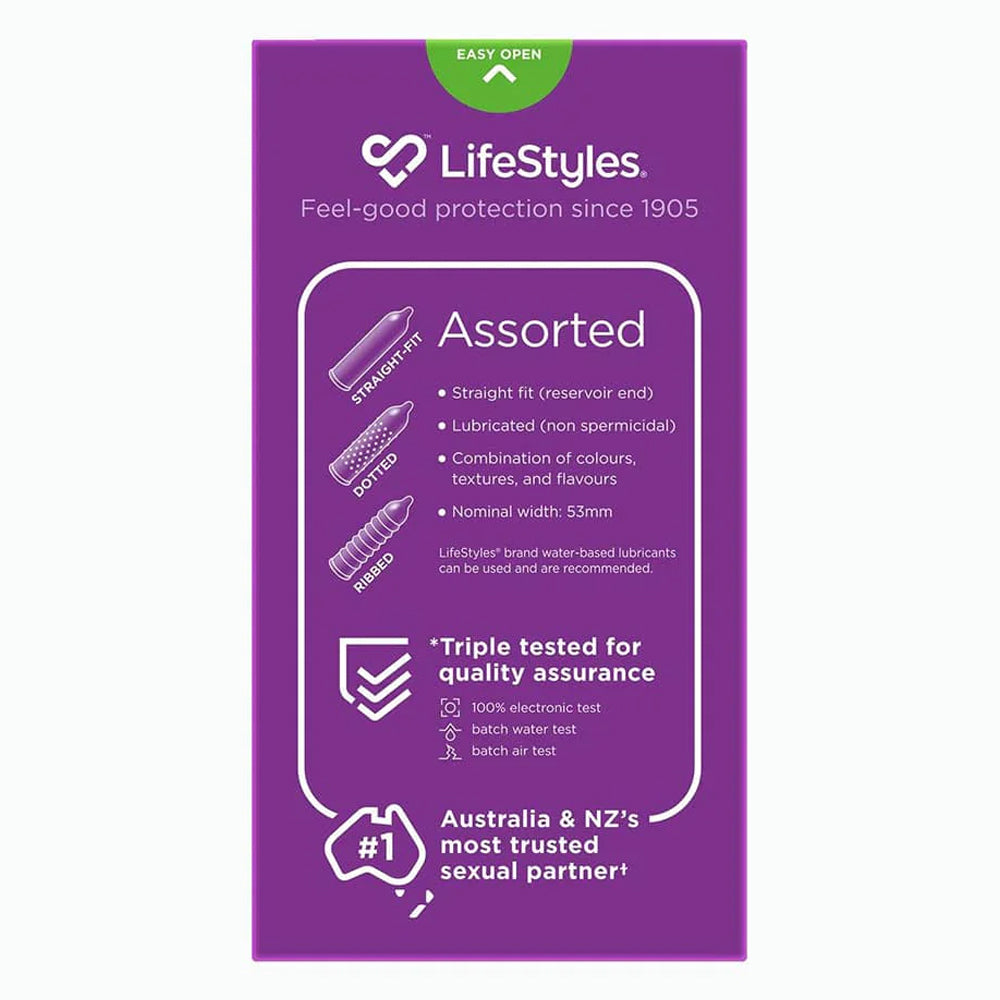 Key features of the Ansell Lifestyles Assorted Latex Condoms Variety Pack: