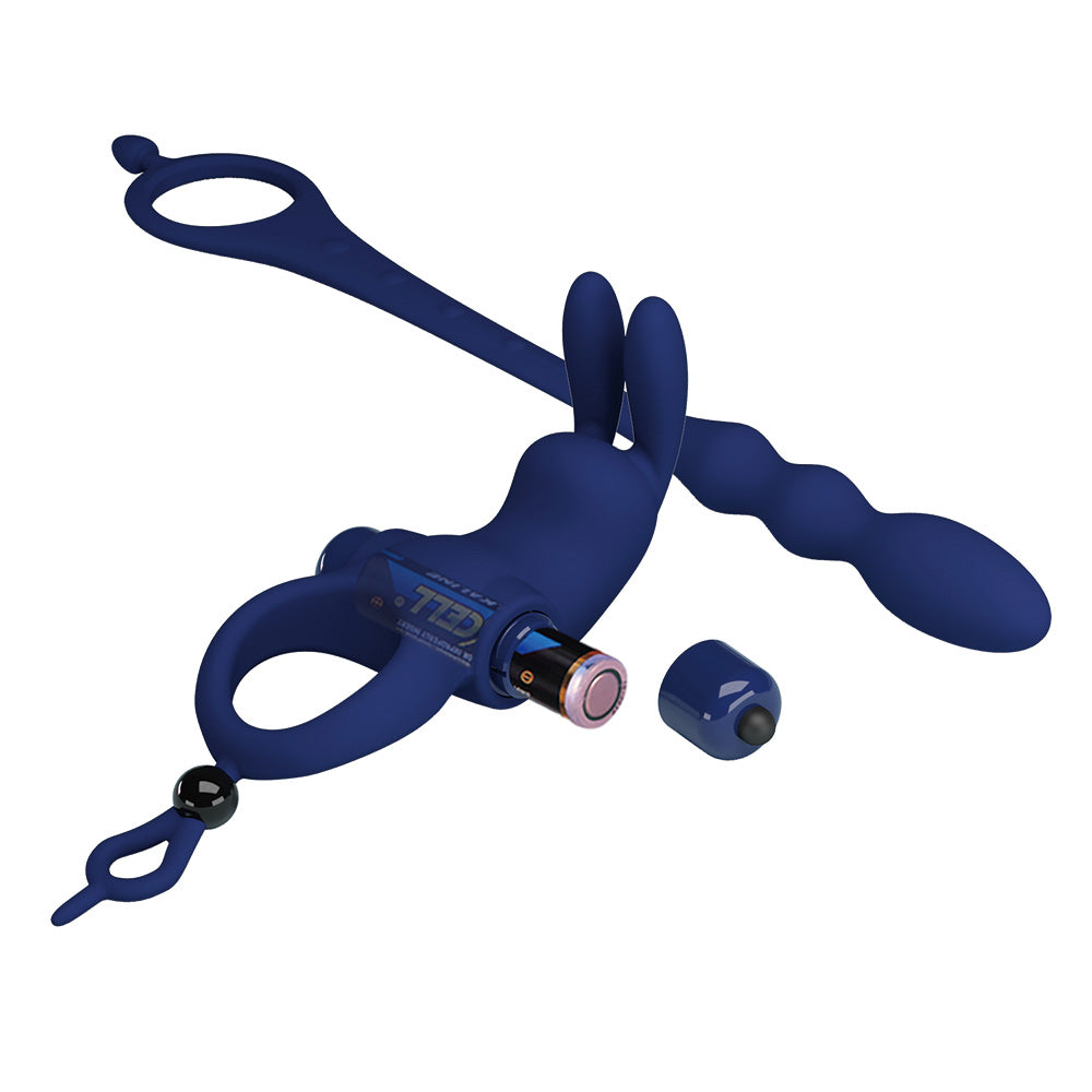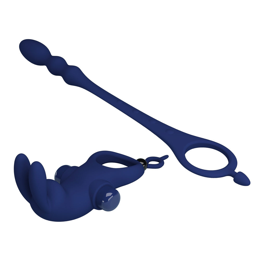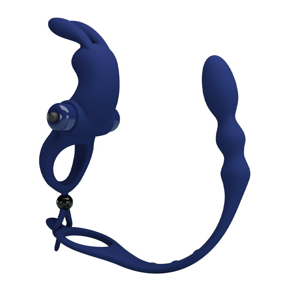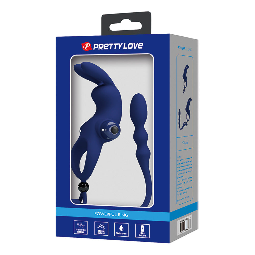 Dive into DP pleasure with Pretty Love's Ayad Vibrating Beaded Double Penetration Cock Ring!