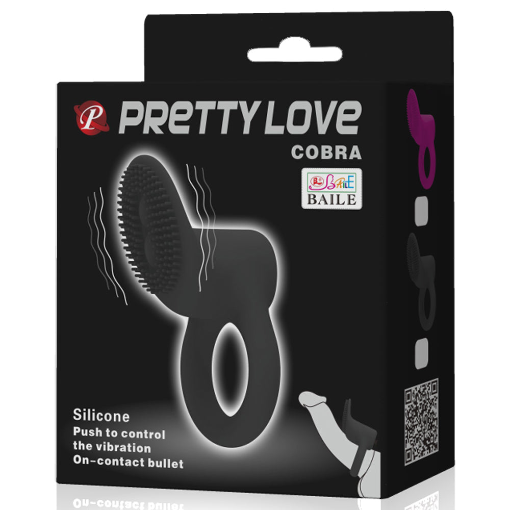 Pleasure your partner like never before with the Pretty Love Cobra Vibrating Cock Ring With Clitoral Ticklers!