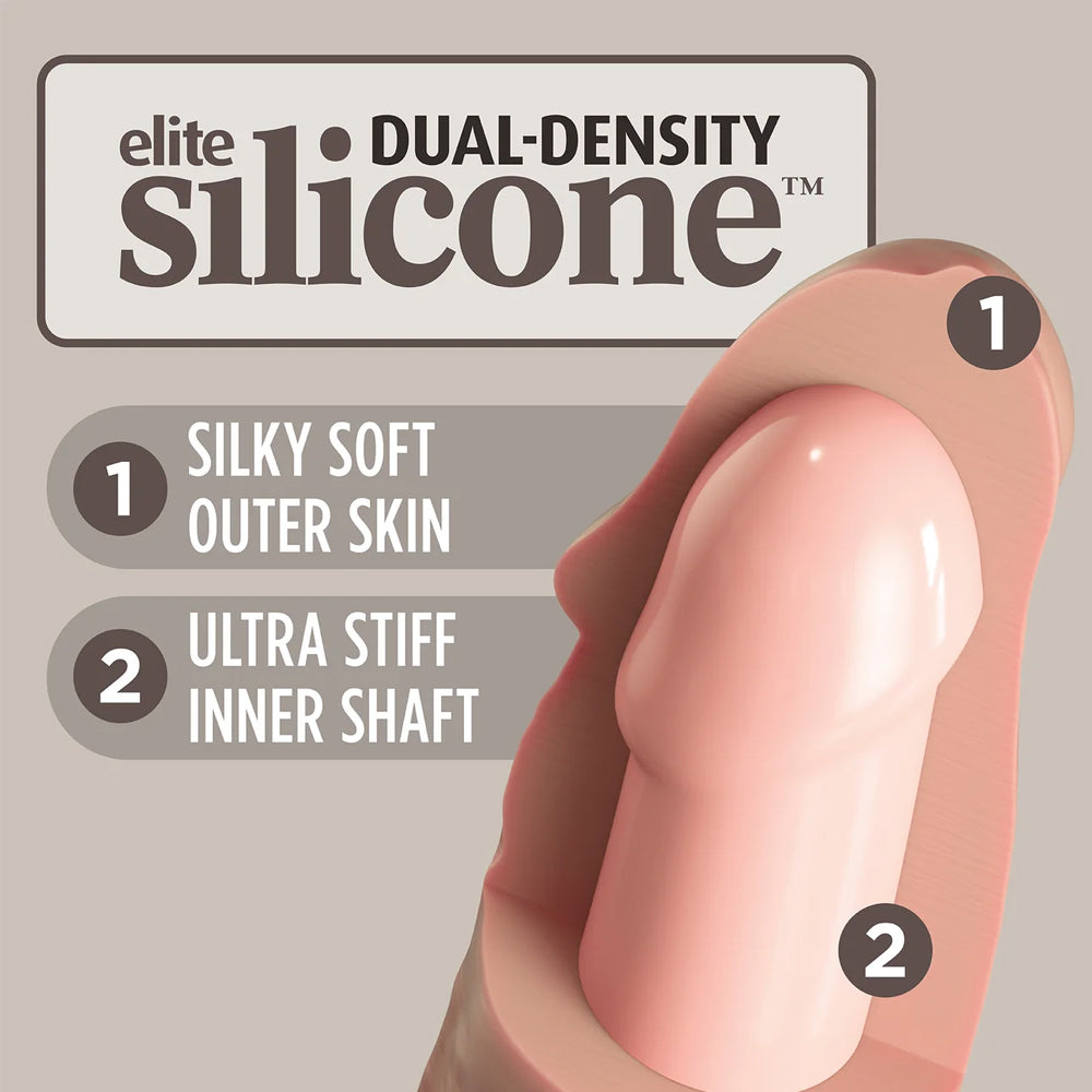 - Dual-density dildo with a firm core & fleshy exterior for a realistic erection-like feeling