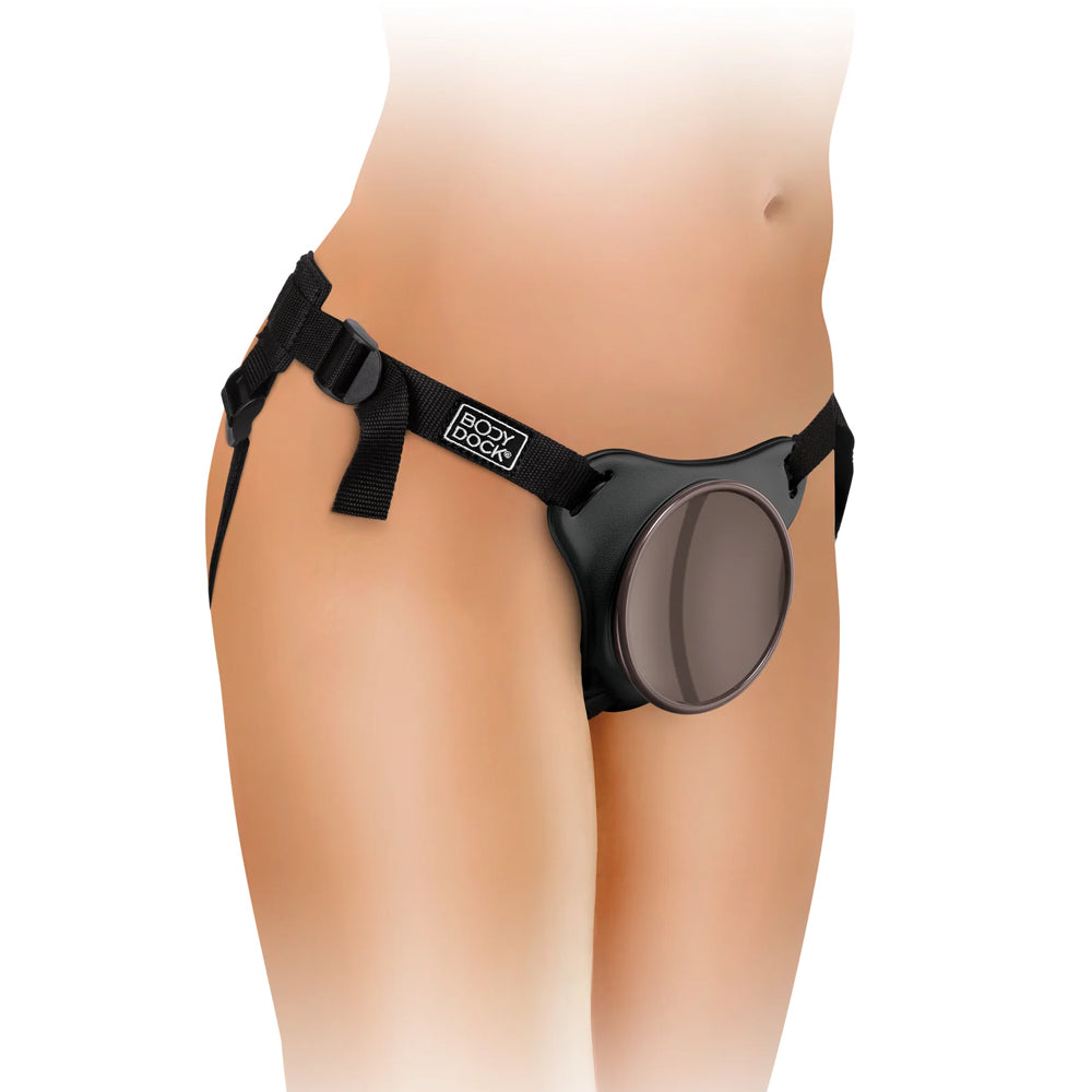 Strap-on play has never been easier than with the Comfy Silicone Body Dock® Harness & 7" Dildo Kit from King Cock's® Elite range!