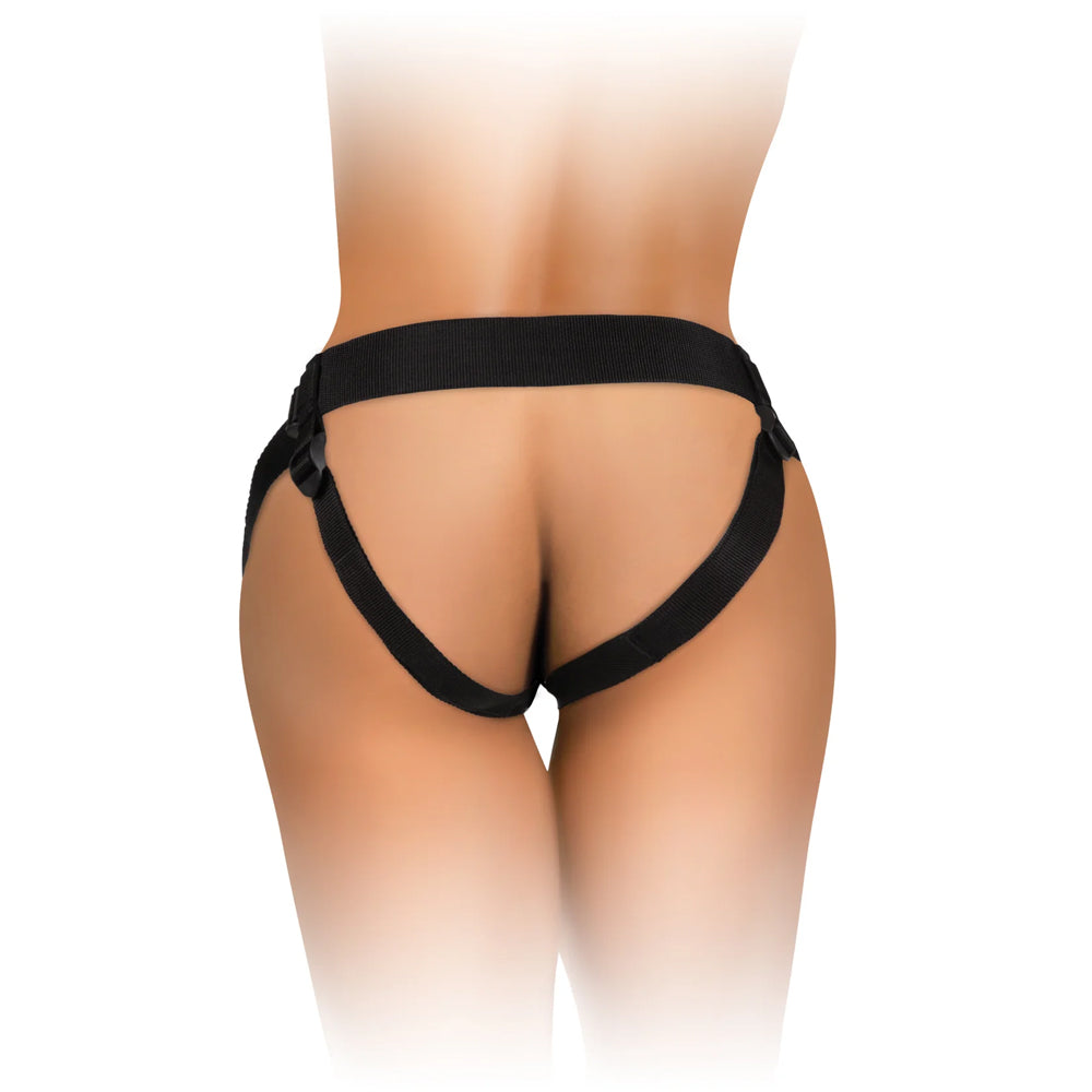 The inside of the harness is lined with soft-touch padding for extra plushness while the form-fitted, padded Body Plate distributes pressure evenly across your body, meaning you can play for longer without discomfort. Wearing it is a breeze too — step into the legs of the harness, push the adjustable sliders on the nylon straps to fit them over your waist and hips, then click in the quick-release buckles for a harness that's always ready when you are!