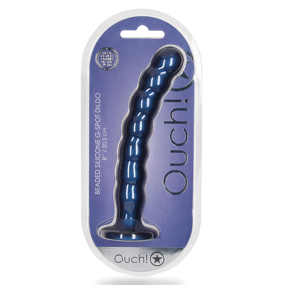 Your G-spot journey is about to get a whole lot more pleasurable thanks to the 8" Beaded Silicone G-Spot Dildo With Suction Cup from the Ouch!
