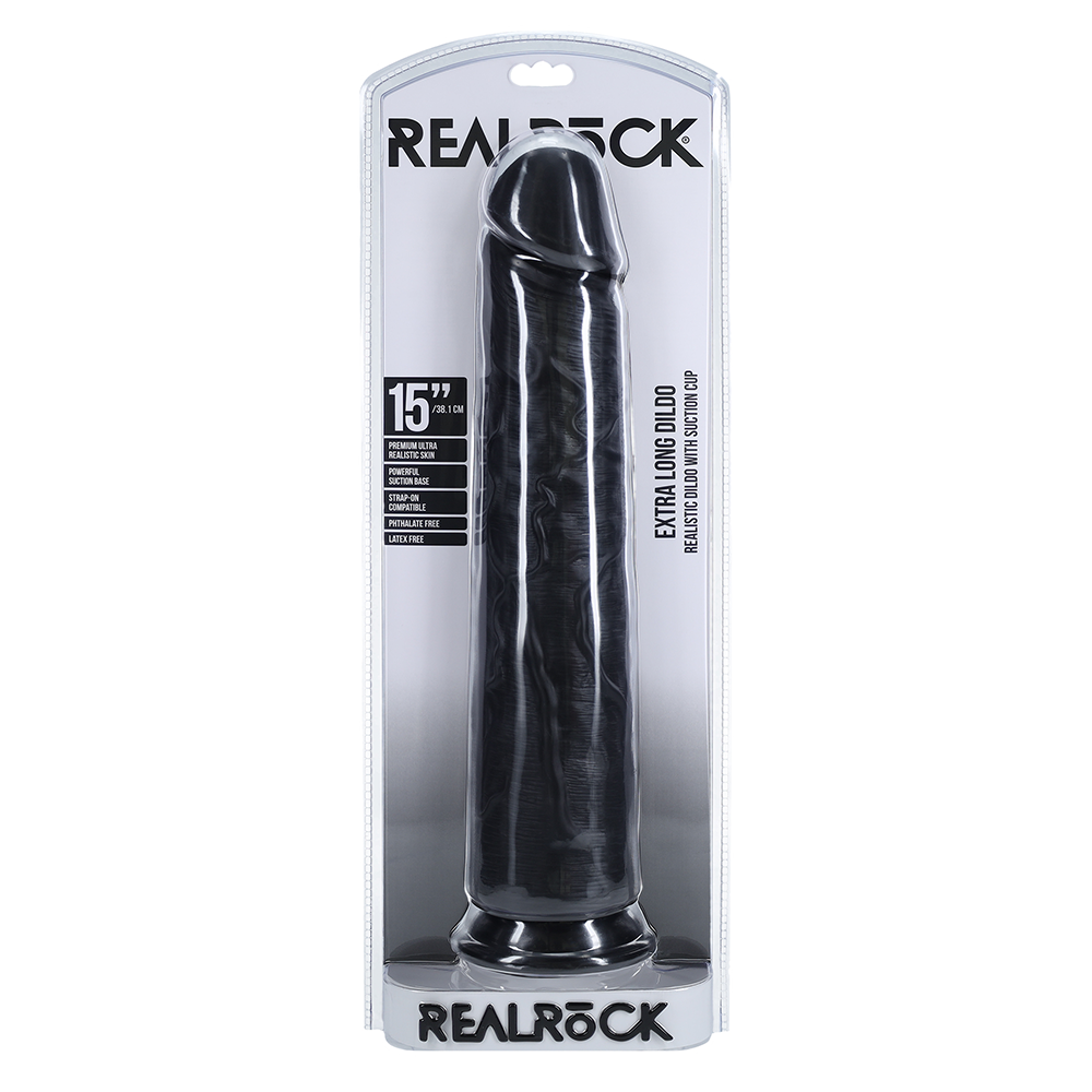 Take yourself to the edge of ecstasy and beyond thanks to RealRock's® 15" Extra Long Realistic Dildo With Suction Cup!