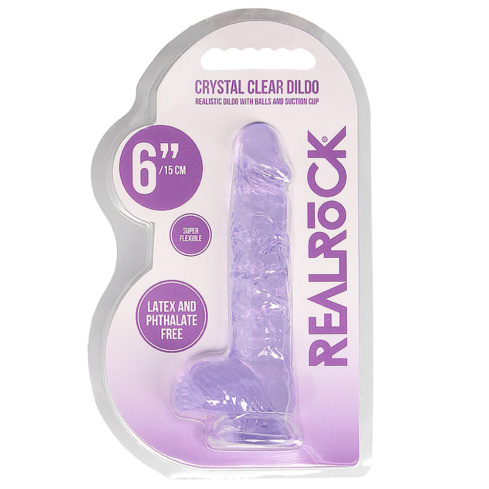 Add a classic must-have to your adult toy collection with the 6" Crystal Clear Realistic Dildo With Balls & Suction Cup by RealRock®!