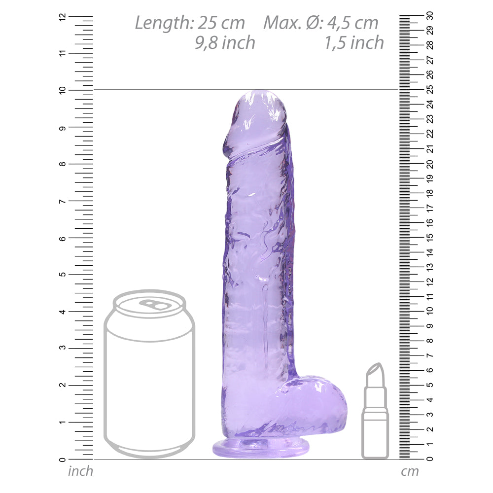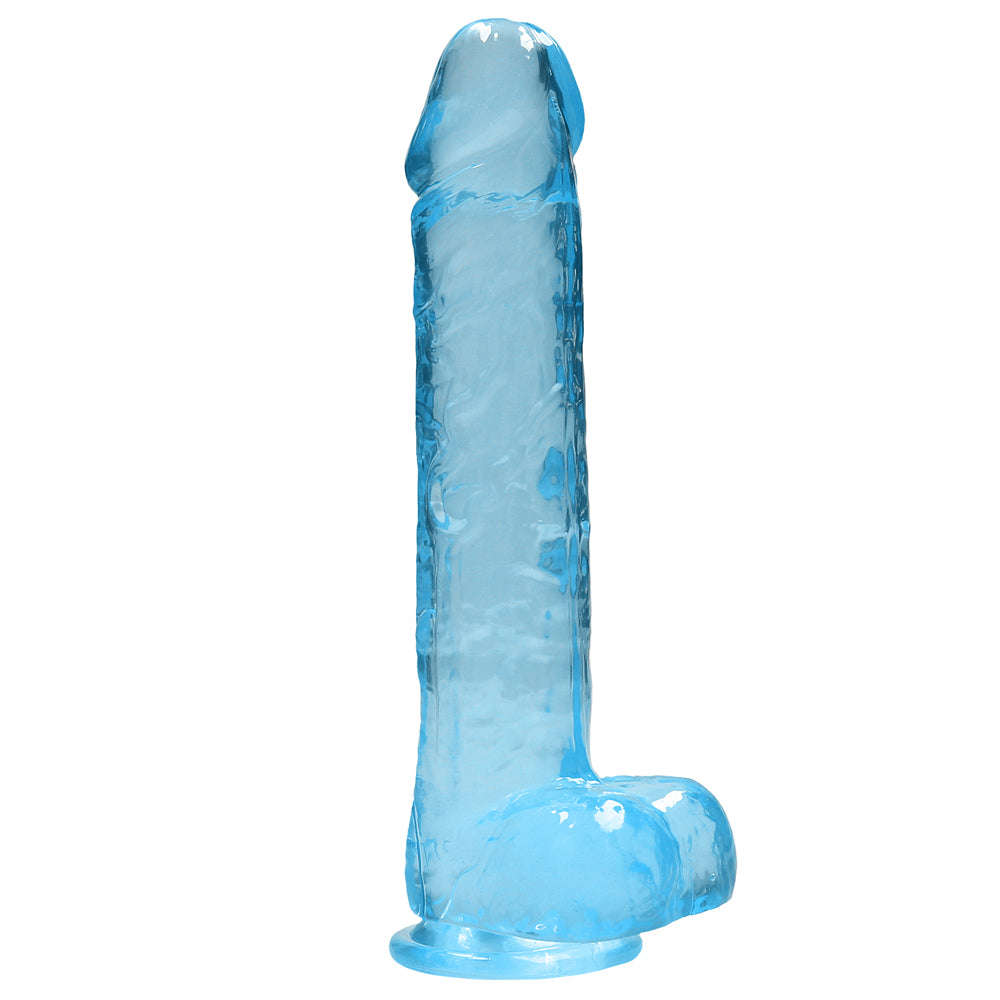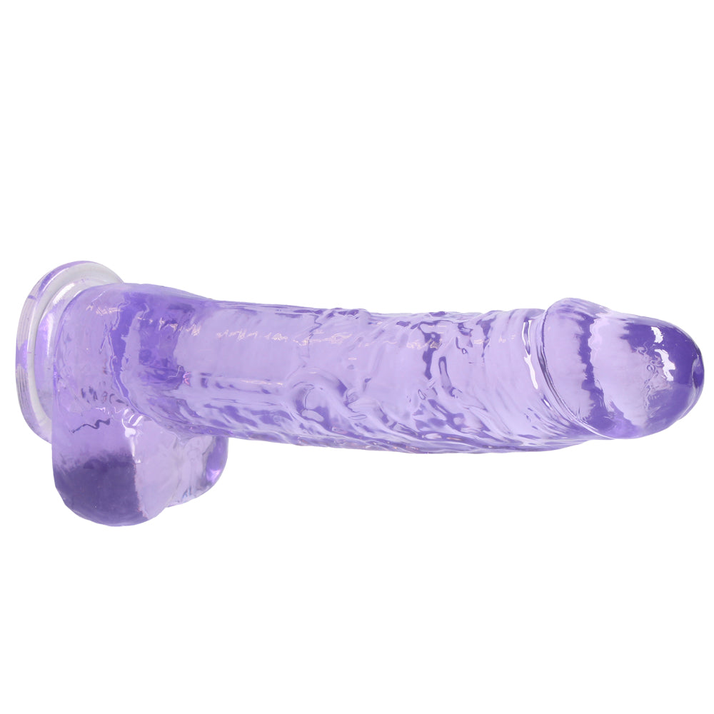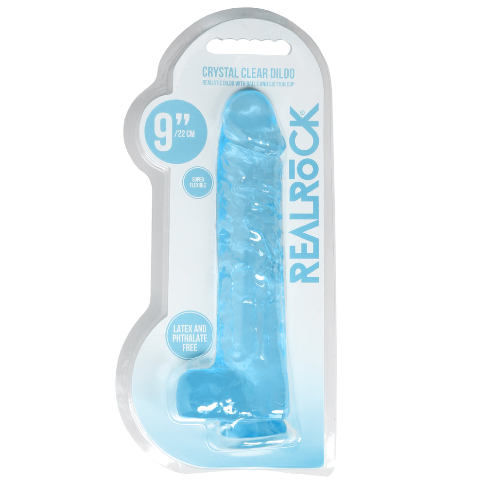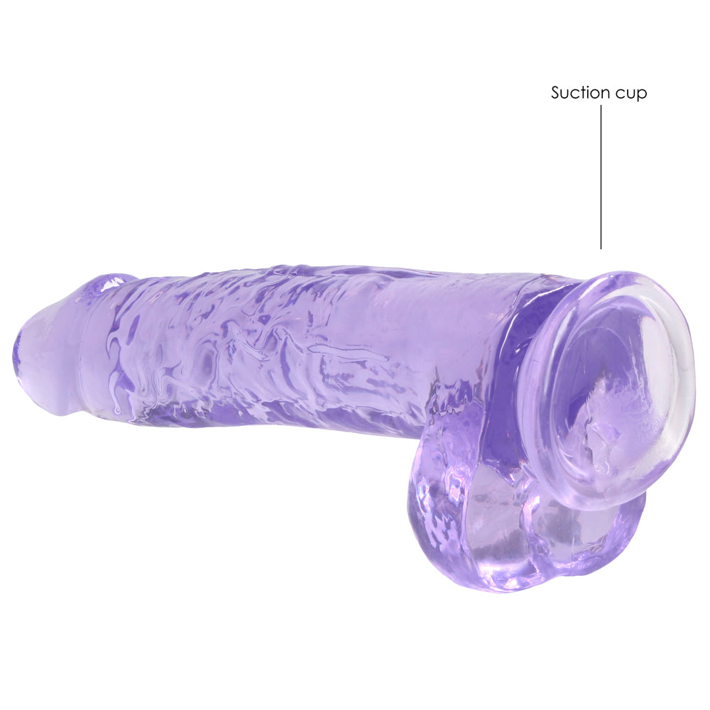 Forge a clear path to pleasure thanks to RealRock's® 9" Crystal Clear Realistic Dildo With Balls & Suction Cup!