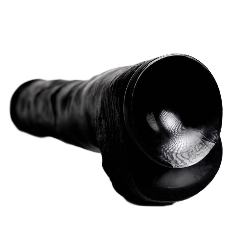 This larger-than-life dildo is blessed with a realistic phallic shape, including a massive head that 'pops' satisfyingly inside you and a veiny shaft that fills you with pleasure as the rippling texture massages your insides. The ridged tip nestles perfectly against your G-spot or P-spot for intense internal sensations, and the thick testicles at the base provide a body-safe platform to keep the dildo at a safe depth inside you at all times, meaning you can enjoy yourself vaginally or anally! Underneath the balls, the sturdy suction cup mounts securely to any flat, firm surface so you can go for a hands-free ride in any position you like. Feeling generous? The suction cup is compatible with strap-on harnesses so you can slot the suction cup into the O-ring and treat your partner to an unforgettable filling...
