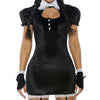 - Includes a short-sleeved contrast collar dress, fingerless gloves & thigh-high fishnet stockings