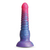 This soft and flexible dildo is made from tri-coloured liquid silicone for a premium smooth finish that glides beautifully against your intimate areas (with the help of some water-based lubricant of course). The tapered tip slips inside you with ease and is followed by thick, segmented ridges that ripple against your inner walls as you slide up and down the length of the shaft, massaging your insides for toe-curling sensations! A wide, knot-like base keeps you feeling fuller than ever as you make your way down this dildo, and the flared stopper ensures everything stays anchored at a safe depth inside you, whether you like to play vaginally or anally.