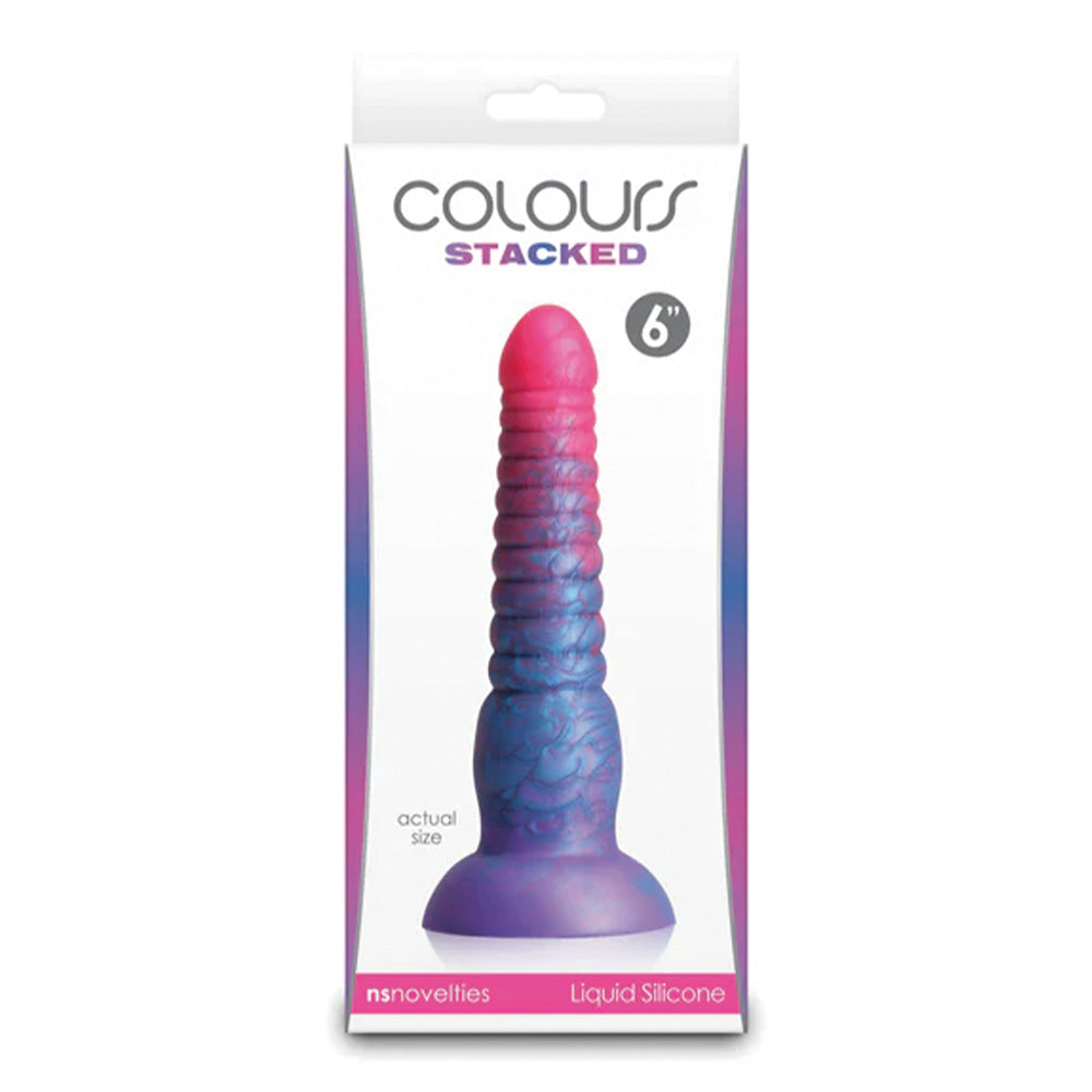 Colours Stacked 6" Ribbed Liquid Silicone Dildo With Suction Cup