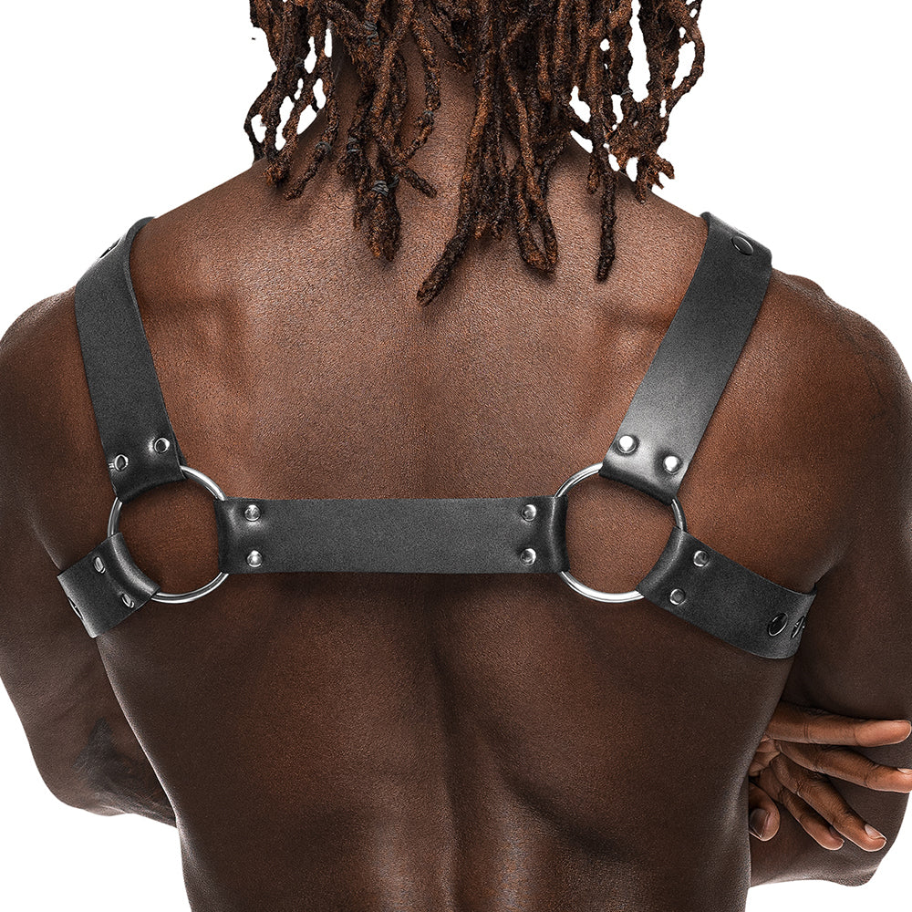 This vegan-friendly harness is a must-have for any male fetishwear enthusiast and is made from neoprene rubber for supreme comfort. The harness criss-crosses over your torso to perfectly frame your pectorals and make you look as powerful as you feel. The neoprene is embellished with striking silver metal studs and zipper details for more visual interest and also features 4 O-rings in the front with 2 more in the back. These are perfect for attaching bondage accessories like leashes, cuffs, and other restraints (sold separately) so your harness can be as functional as it is stylish! The adjustable snap buttons let you don or doff this harness in a flash so you can be ready to wow at your next BDSM party in no time...