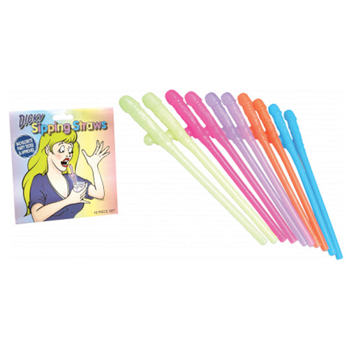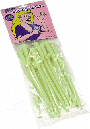 These fun pecker-shaped straws are a must-have for every hens' night and adult party! Each pack includes 10 straws and is available in Flesh, Glow in the Dark, Black and Multicoloured designs.