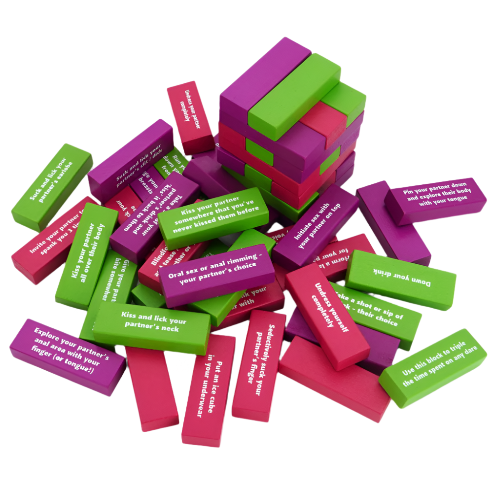 Put a sexy twist on the classic tumbling tower game with the Tower of Pleasure Sexy Dare Foreplay Game!