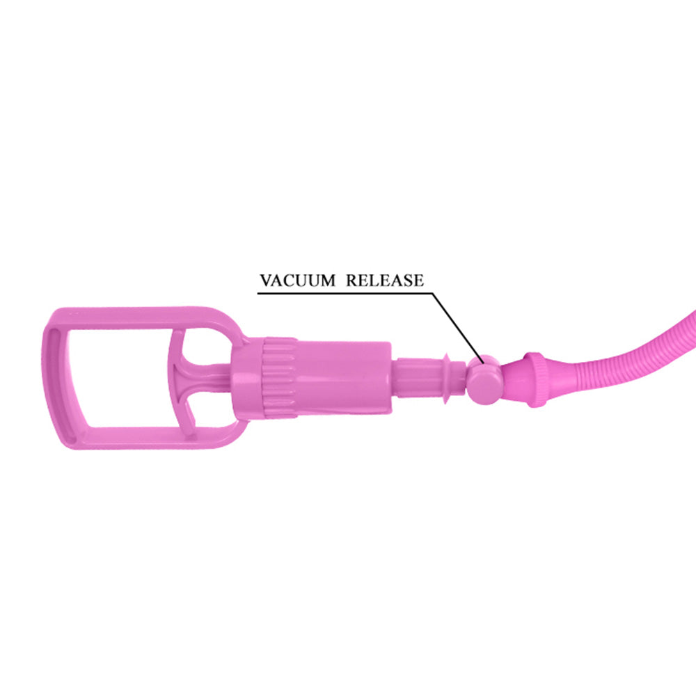 This pretty-in-pink breast pump set comes with dual cups that fit over each breast to draw blood flow into both at once, increasing their size, firmness, and sensitivity so you can get your bust to look and feel its best before and during intimate fun. The dual-ended hose connects to each cup, as well as an easy-pull trigger handle that fits perfectly in one hand, letting you increase the vacuum pressure to your liking with just your index and middle fingers. Both breast cups fit over most breast sizes and sport a smooth silicone seal for maximum comfort while also keeping air and moisture locked out. You can secure the cups to stay in place on your body thanks to the adjustable swan hook closure, which closes like a strapless bra in the back and leaves your hands free to operate the pump! When your pumping session is over, hit the release button to free yourself from the suction and enjoy your bigger, firmer, more sensitive breasts!