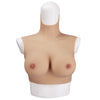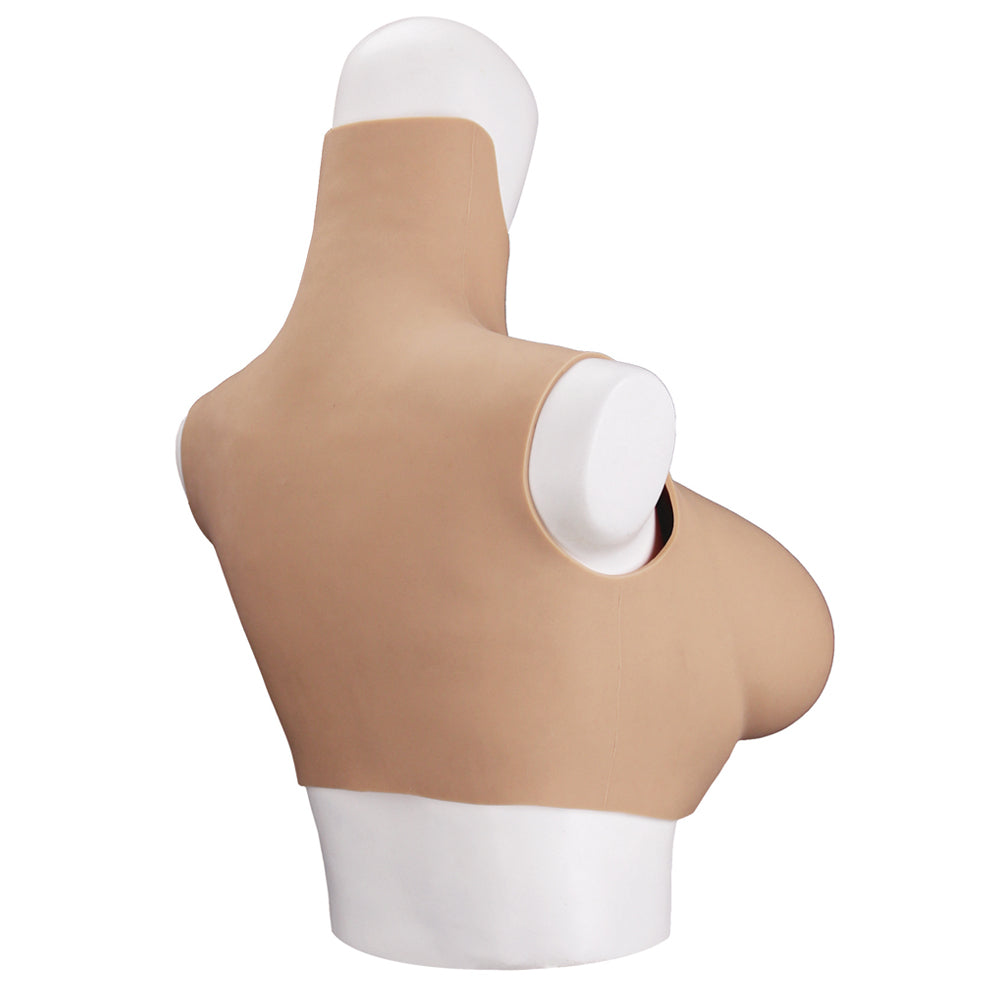 This high-necked body form is blessed with large, rounded E-cup breasts in a natural teardrop shape, perfect for gender affirmation without requiring MTF top surgery, performing as a drag queen, and other journeys where you'd like a more feminine look up top. Each breast's convex point is sealed from the inside, ensuring a flush fit against your chest that's comfortable to wear for long periods of time. This silicone undergarment features lifelike anatomical details, including erect nipples and realistically painted areolas to give you the natural look and feel you deserve!