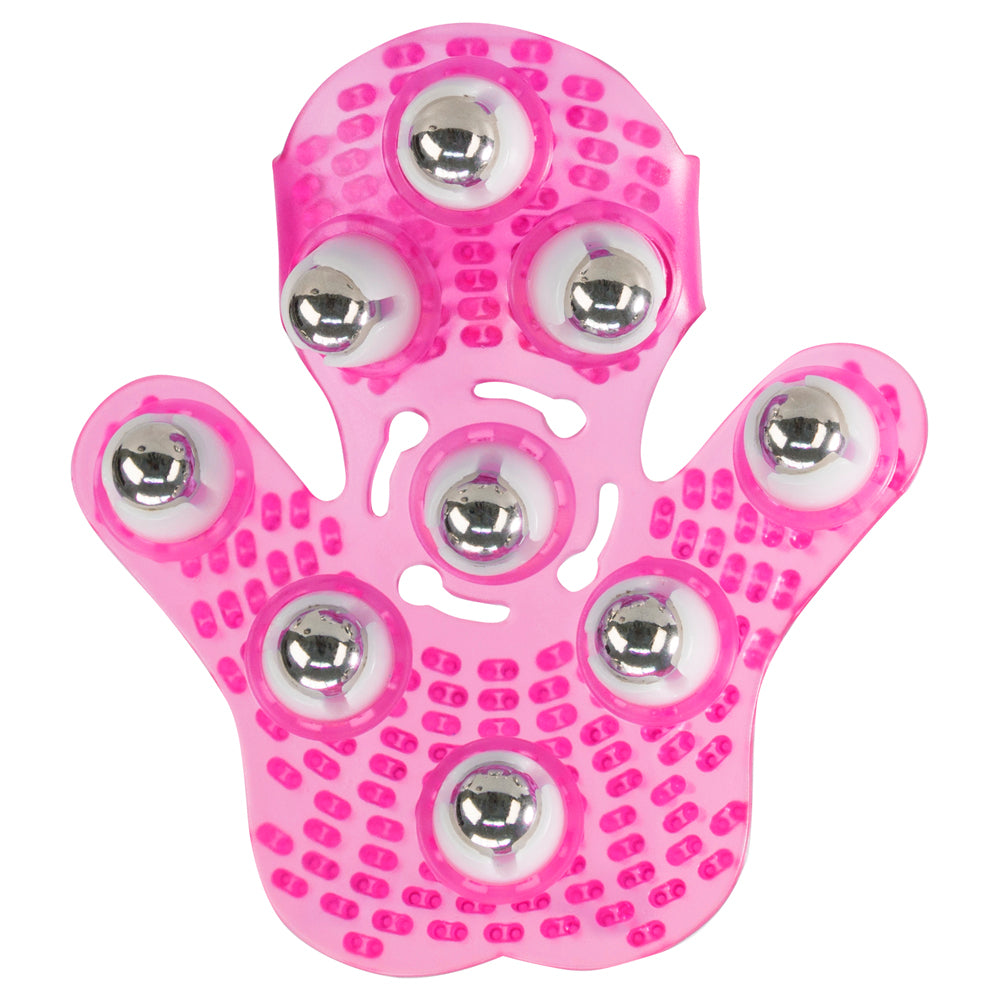This innovative massage glove is designed to offer stress relief and relaxation as its steel balls roll and glide over your body in 9 spots simultaneously. Its palm shape conforms to your body and features an adjustable strap on its back for the user to slip over their fingers on either hand. A raised bristle-like texture gives you extra traction, helping the Roller Balls Massager Glove to move with your hand. No awkward gripping or finger movements means it's as simple as running your hand over your body!