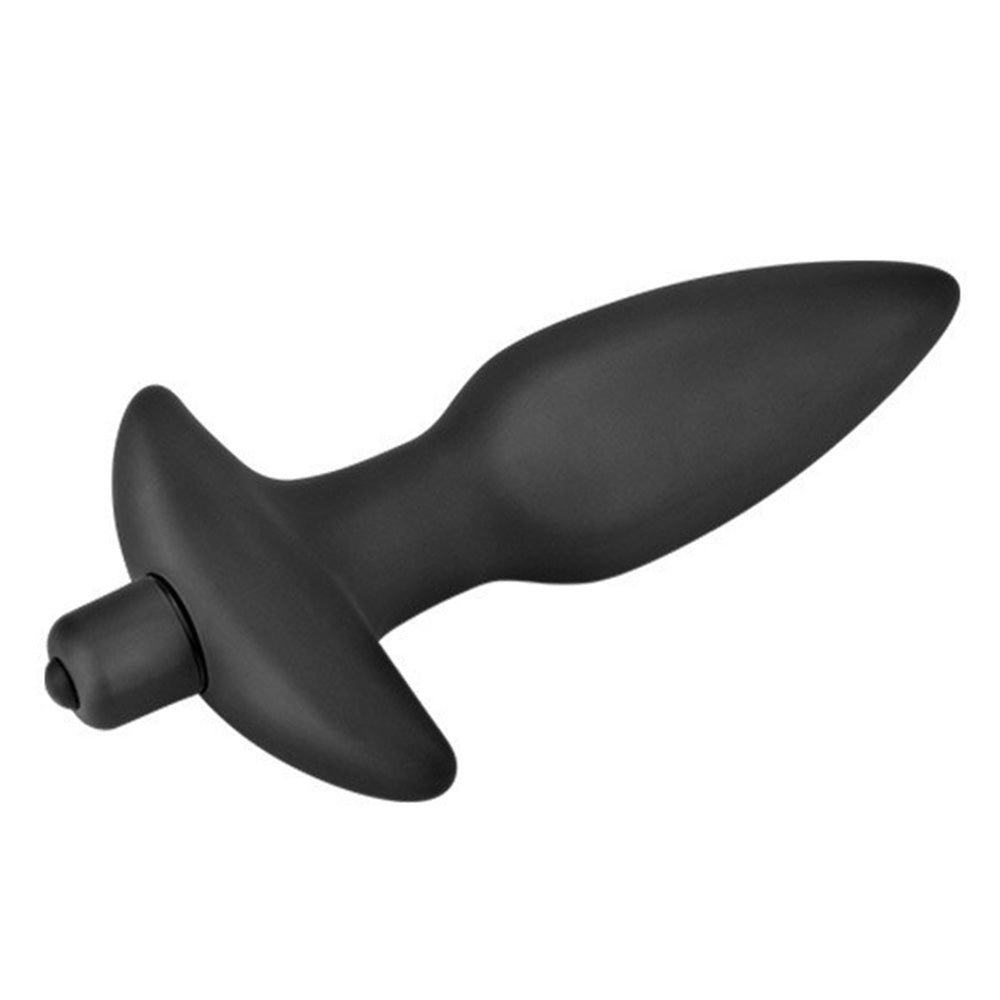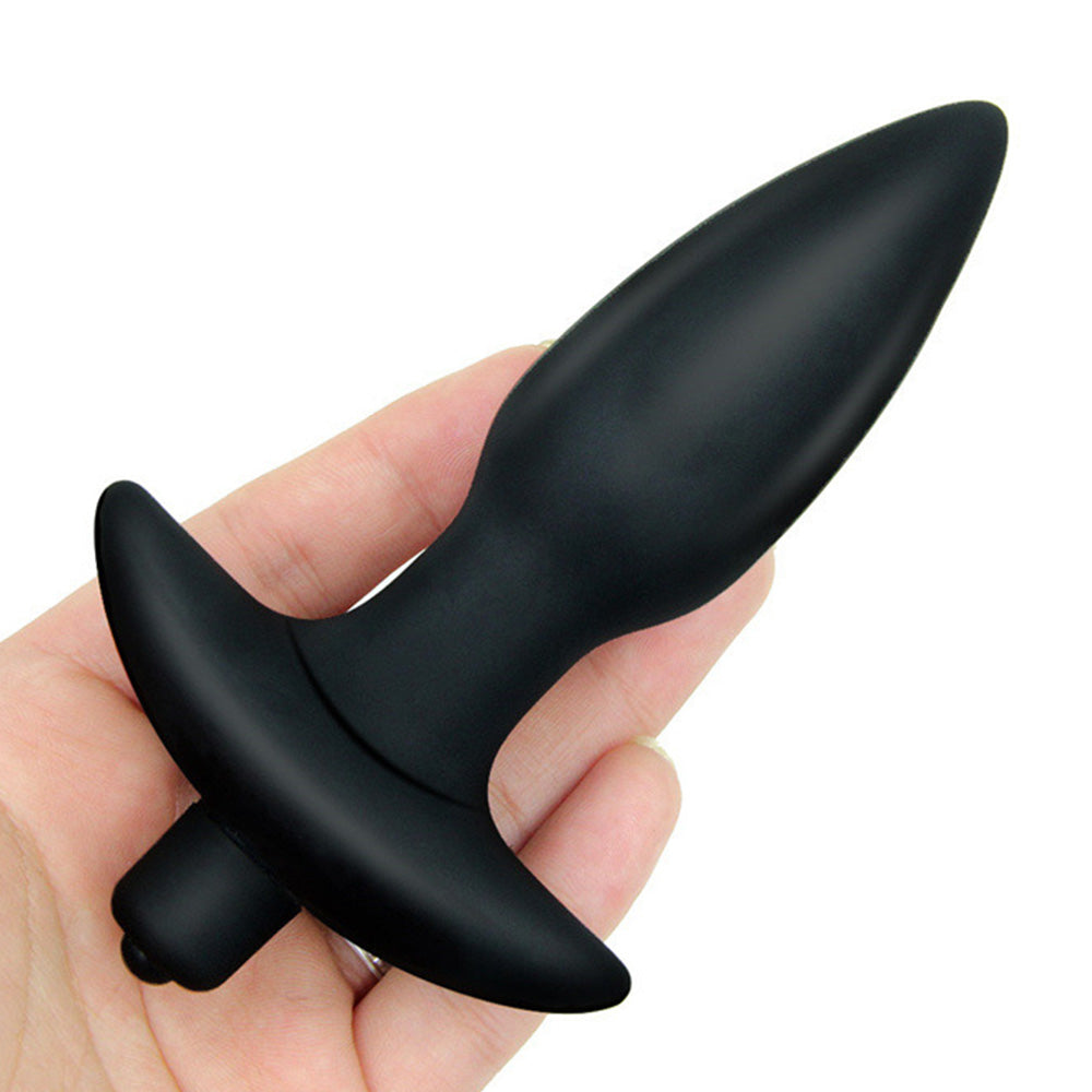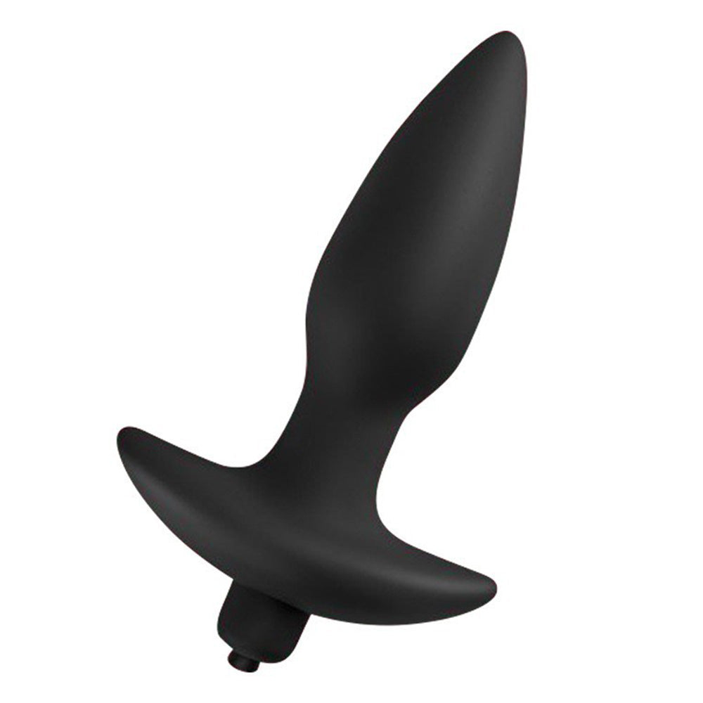This black butt plug has a rigid tapered tip and a firm neck for easy insertion as the lightly flared body gently glides inside you (with the help of some water-based anal lubricant of course). At the base of the plug, a curved stopper fits flush between your cheeks to hold the plug safely outside your body, and under that, a single button lets you control the vibrating motor's 10 toe-curling vibe patterns! The T-shaped base also doubles as an easy-pull handle to remove the plug once your fun is done so you can easily clean the silky-smooth silicone with a damp cloth and toy cleaner and get it ready to go again...