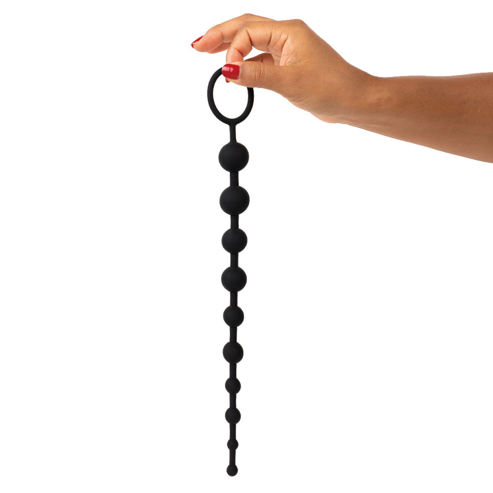 This flexible strand of anal beads comes with 5 pairs of beads that start in a beginner-friendly, teeny-tiny size and gradually get larger to increase pleasure at your own pace. They're finished with a large stopper ring at the end that keeps the beads anchored at a safe depth from outside your body and doubles as a convenient retrieval loop once you're done with the fun! These waterproof silicone beads are perfect for adventurous play in the shower or bath and are easy to clean with warm water and some adult toy cleaner so they're always ready to fill and thrill you...