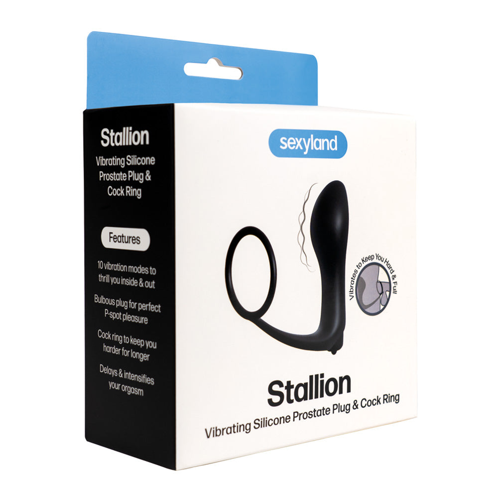 Enhance your performance and your pleasure all at once with Sexyland's Vibrating Stallion Silicone Prostate Plug & Cock Ring!