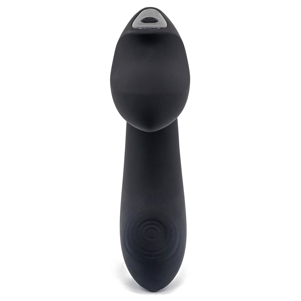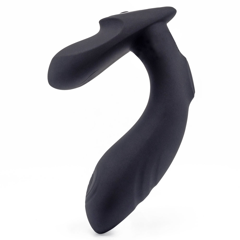 This L-shaped prostate massager has a unique curved design with a partially flattened shaft that lets you sit and rock back and forth on it for maximum prostate milking pleasure. The bulbous head has pulsating ribbed rings that tap against your sensitive P-spot while the vibrating perineal arm makes this toy safe for anal use and offers external stimulation too!
