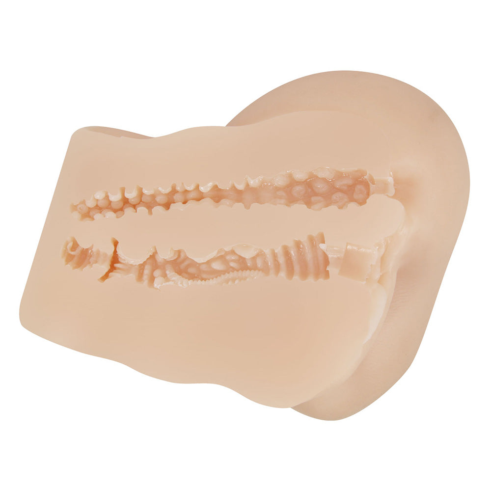 This vaginal and anal masturbator is the perfect combo of 2 incredible entrances and the pleasurable sensation of vibration, all in a mini 360° replica of a woman's pelvis. Hailey features a beautiful pair of sculpted booty cheeks and a hand-painted vulva so she looks just as good as the real deal, and feels even better! As you insert yourself into either her tight puckered anus or vagina, you'll be met with a unique texture of raised pleasure nodes and spiralling ribs in both tunnels, which are separate to provide 2 totally unique experiences. Take her for a ride in missionary, doggy-style, cowgirl, and all your other favourite positions — she's up for it all!