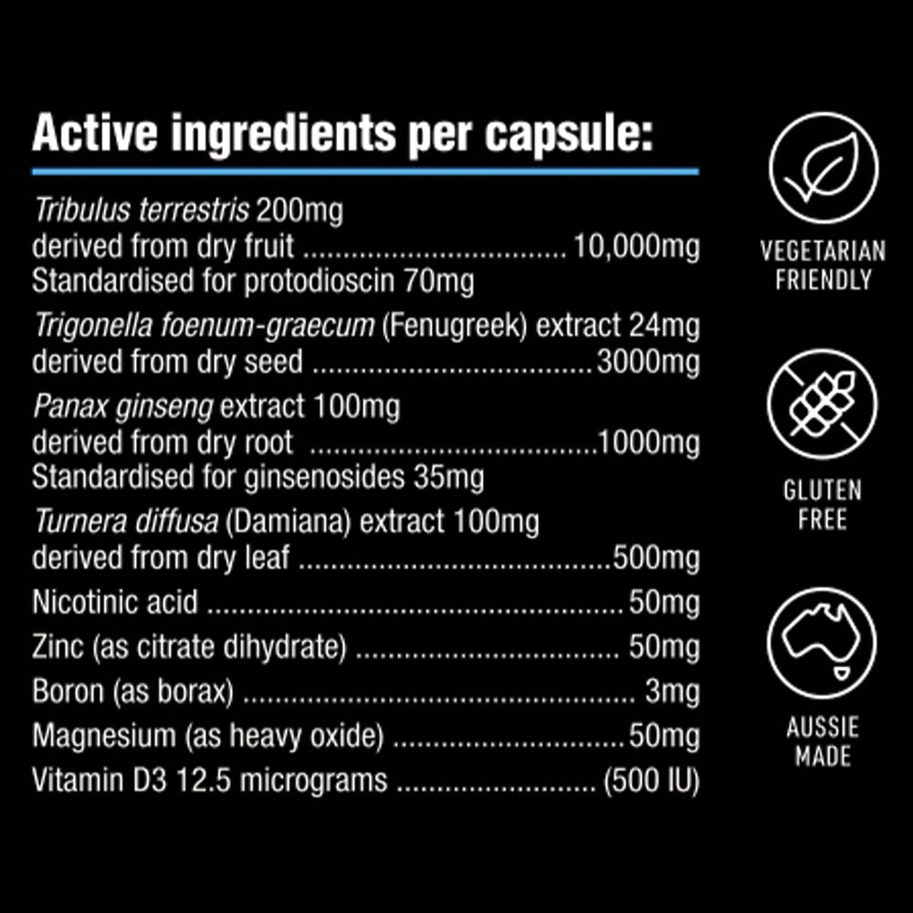 Tribulus terrestris (Bindii) 200mg derived from dry fruit 10,000mg (standardised for protodioscin 70mg)