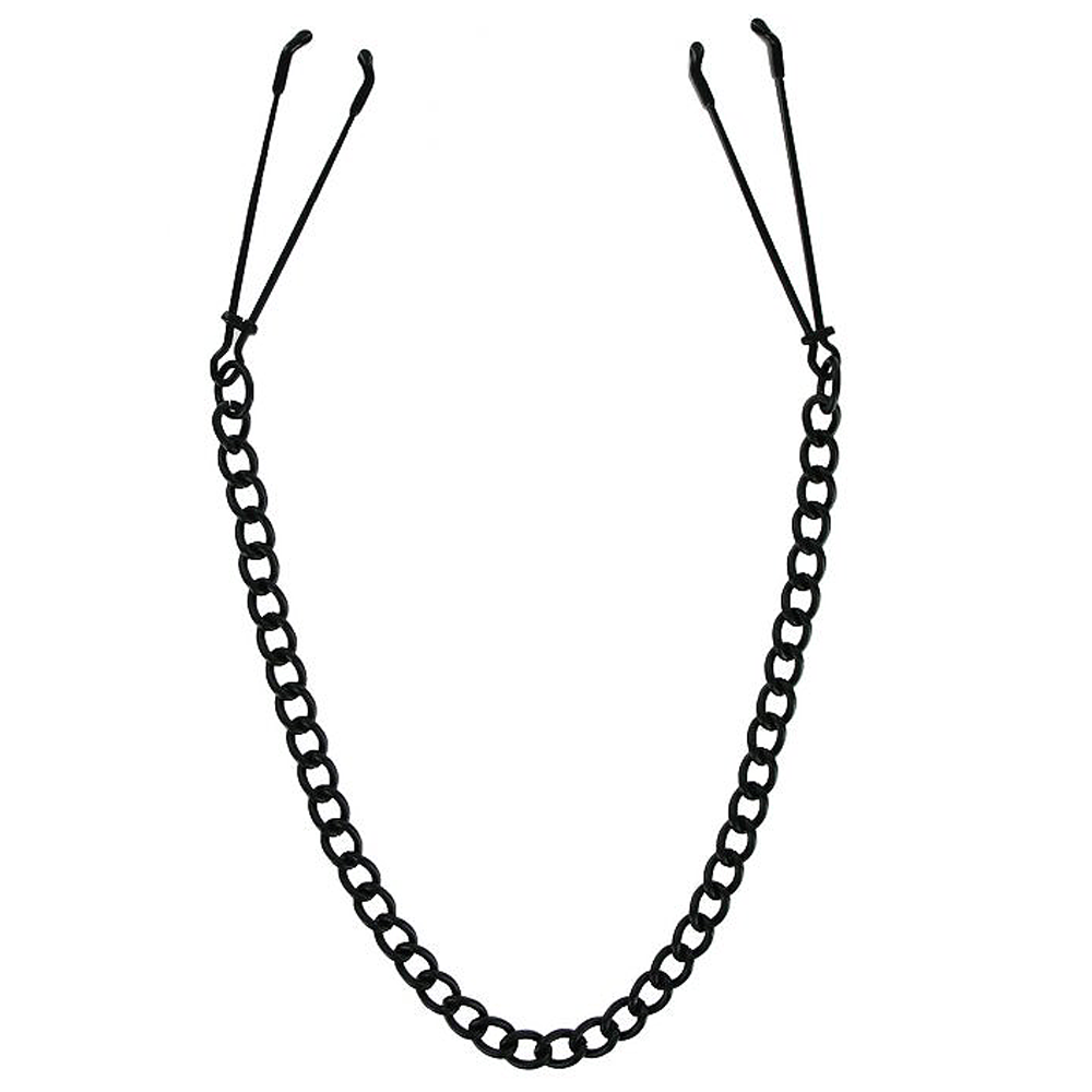 These tweezer nipple clamps have multiple pressure settings, which you can adjust by sliding the clamp up or down depending on the intensity level you or your sub is craving. The vinyl-coated ends help to keep the wearer comfortable (but not too comfortable) as the clamps deliver exquisite pinching straight to their sensitive nipples, or other erogenous zones if you're feeling especially adventurous. A sturdy metal chain dangles between the clamps, just begging for you to tug on it and hear your sub whimper and moan...
