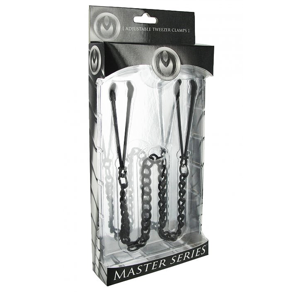 Watch your plaything squirm in pain and pleasure with the Master Series™ Reign Noir Tweezer Style Nipple Vice!