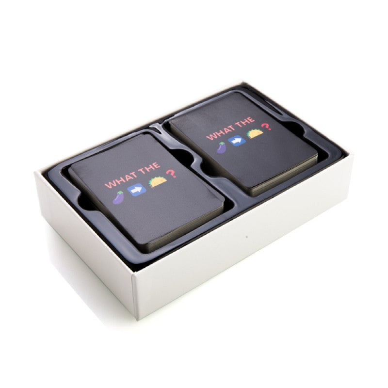 What the? Emoji Card Game is a very fast-paced card game of turning Emoji Cards into dirty texts. The way you with this game is by stringing together three naughty emojis into a dirty text the quickest. Already a professional? then why not see if you can string together 4 or 5 cards in the quickest time. Remember the raunchy answers need to make sense based on the cards in play.