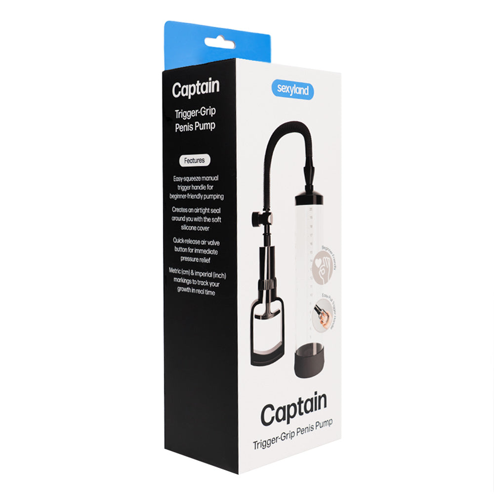 Elevate your strength and performance in the bedroom with the Captain Trigger-Grip Manual Penis Pump from Sexyland!