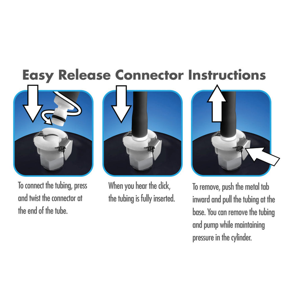 - Silicone hose for a superior seal with an easy-release button when you're ready