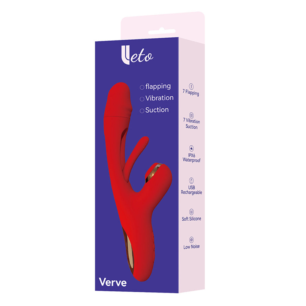Key features of the Leto Verve G-Spot Tapping Clitoral Suction Rabbit Vibrator: