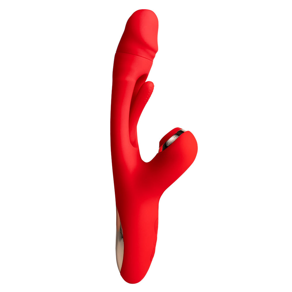 Thrill yourself with 3 times the fun thanks to the Verve G-Spot Tapping Clitoral Suction Rabbit Vibrator!