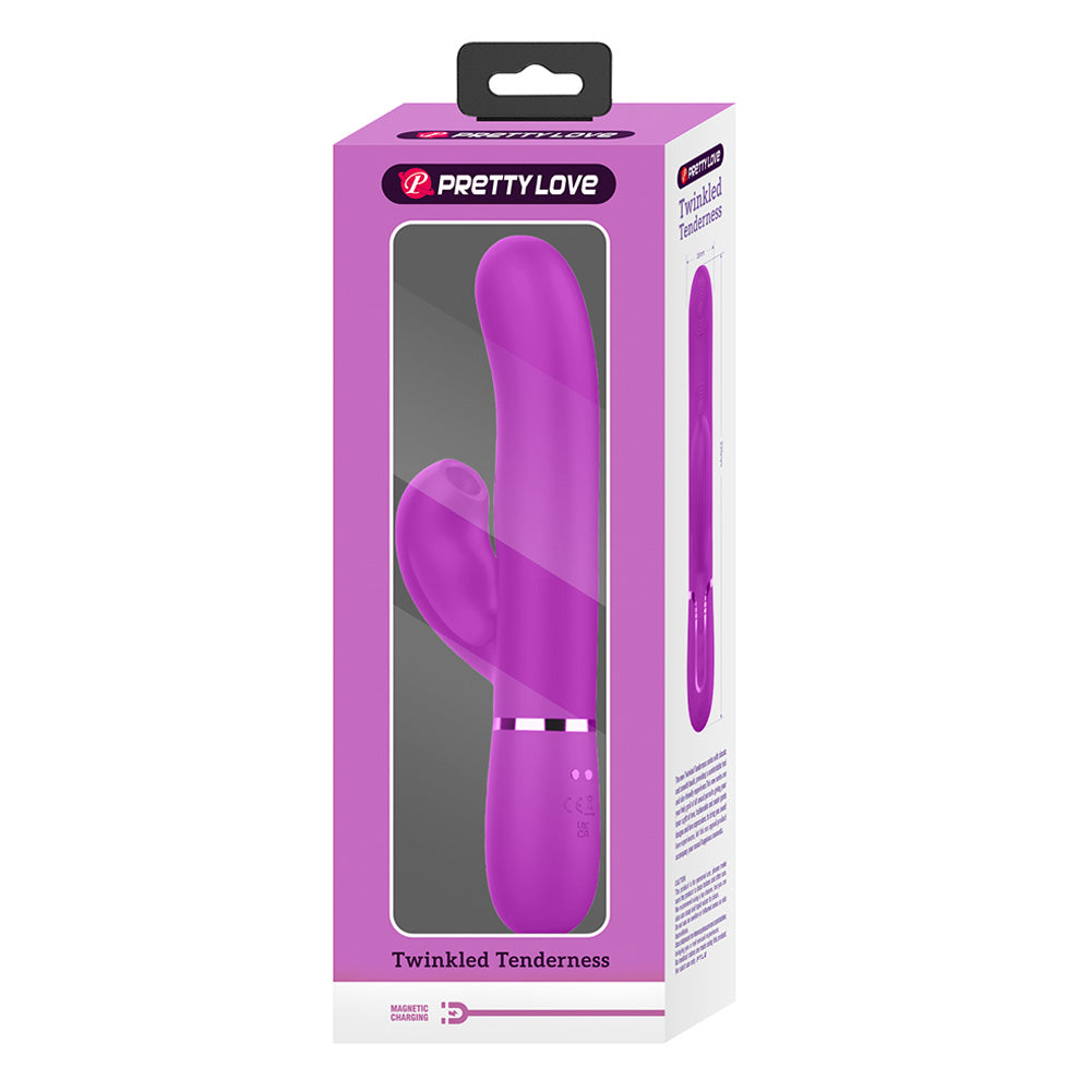 This 3-in-1 rabbit vibrator comes from Pretty Love's Twinkled Tenderness range and features triple motors for thrilling stimulation inside and out. The lightly curved shaft has two thumping pads along its length that pulsate in harmony together, tapping away at your sensitive G-spot in 7 heavenly patterns. Meanwhile, the external arm gently cups your clitoris with a soft silicone mouth that sends 7 separate modes of pulsating air waves of contactless pleasure straight to your sweet spot!