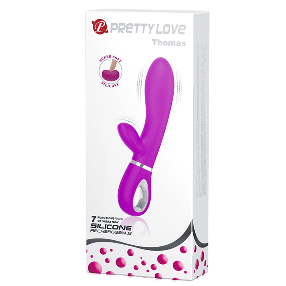 Enjoy mind-blowing internal G-spot massaging and clitoral stimulation with the Pretty Love Thomas Dual-Density Silicone Rabbit Vibrator!