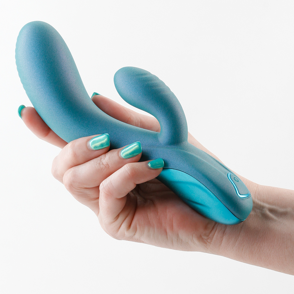 This dual-motor rabbit vibe is made from plush shimmer silicone with a stunning iridescent finish that feels as good as it looks. The flexible curved shaft ends in a bulbous round head that will nestle up against your G-spot perfectly while the external arm dances over your clitoris at the touch of a button. The Regent Rabbit Vibrator has just a single button to control the synchronised motors so you stay in control with no fuss during play — hold down the power button to turn the vibrator on or off, and tap to cycle through the 10 modes of vibration!