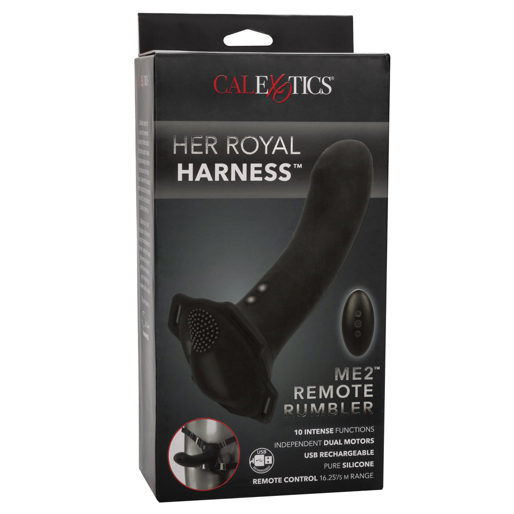 Take your mutual satisfaction to whole new level with the Me2™ Remote Rumbler Vibrating Strap-On from CalExotics'® Her Royal Harness™ range!
