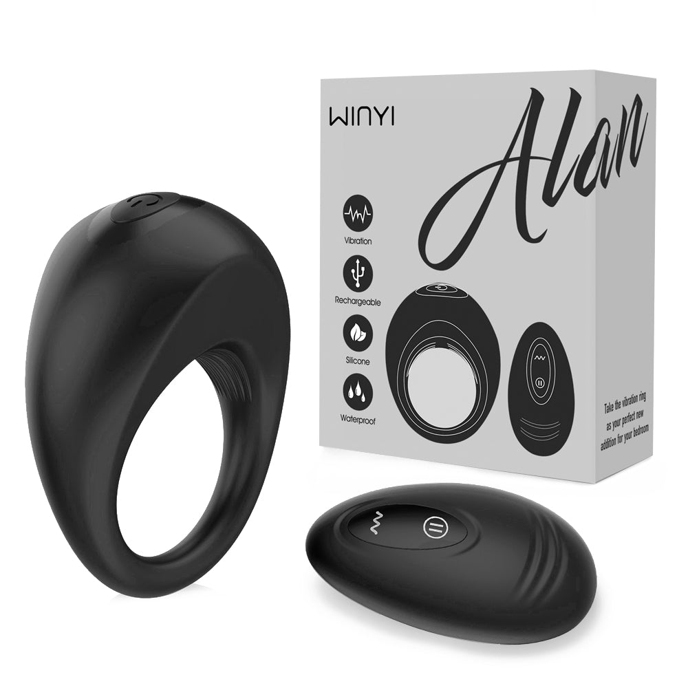 Boost bedroom play with a partner thanks to the Winyi Alan Remote Control Vibrating Cock Ring!